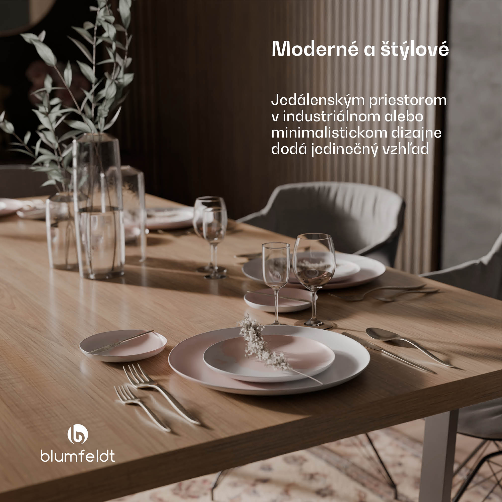 Jedálenský stôl blumfeldt Bearsdon s moderným dizajnom harmonicky zapadá do industriálnych alebo minimalistických konceptov miestností a dodáva jedálenskému priestoru moderný nádych.Pri výrobe boli použité len vysokokvalitné materiály z kontrolovaných zdrojov. Takto si environmentálne povedomie nájde cestu do vášho domova. Výroba zároveň podporuje miestnych výrobcov. Preglejková doska stola je mimoriadne odolná a vhodná na každodenné používanie. Je odolná voči zafarbeniu, teplu, poškriabaniu a nárazom a ponúka dlhotrvajúci a odolný povrch. Elegantný vzhľad dreva pôsobí aj v jedálni mimoriadne útulne.Stolová doska blumfeldt Bearsdon je ideálnou voľbou na spoločenskú večeru a štýlové stolovanie. V našej ponuke nájdete aj zodpovedajúce stolové nohy v rôznych veľkostiach:Čísla položiek pre nohy stola: 10045745, 10045746
