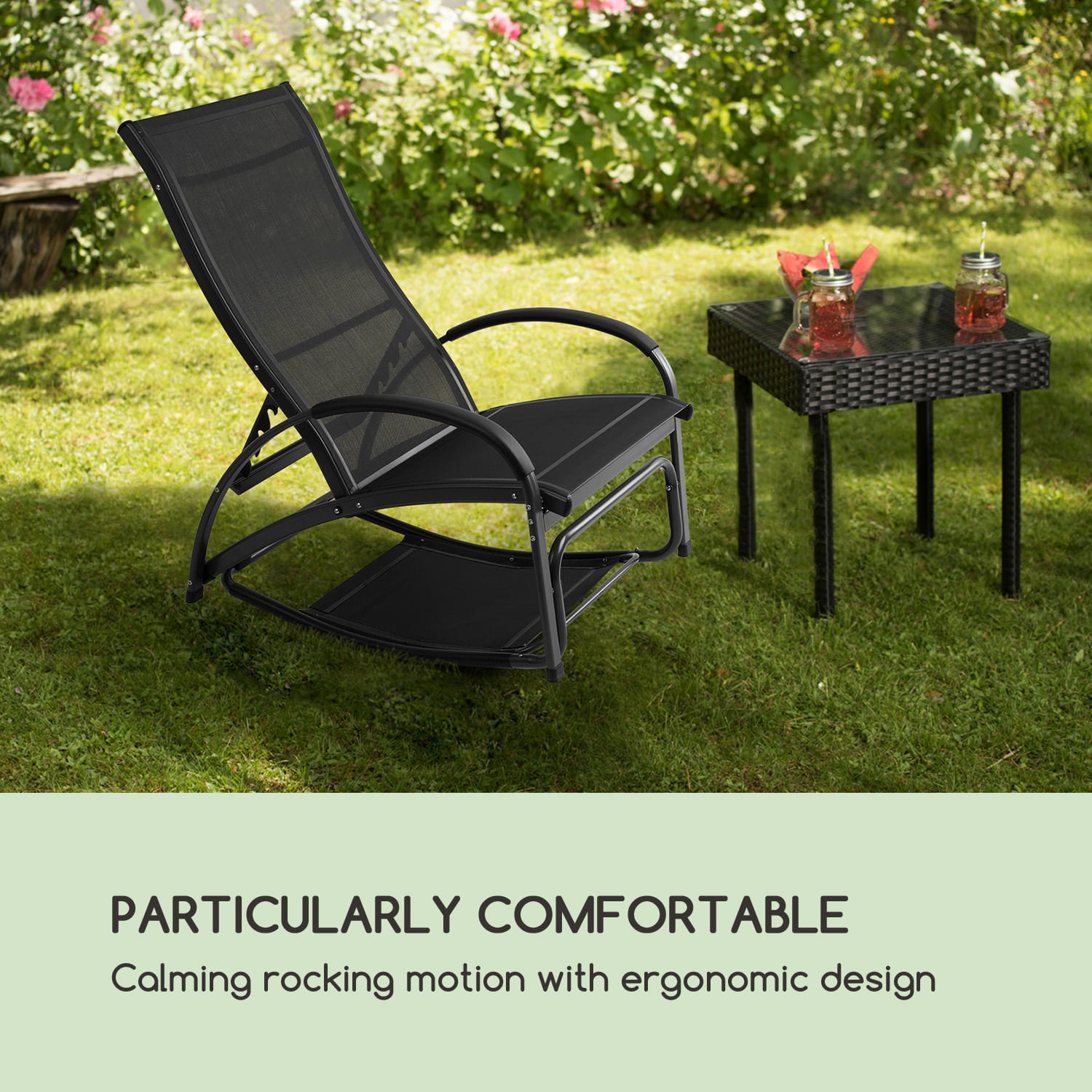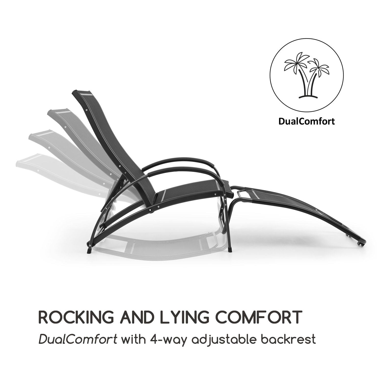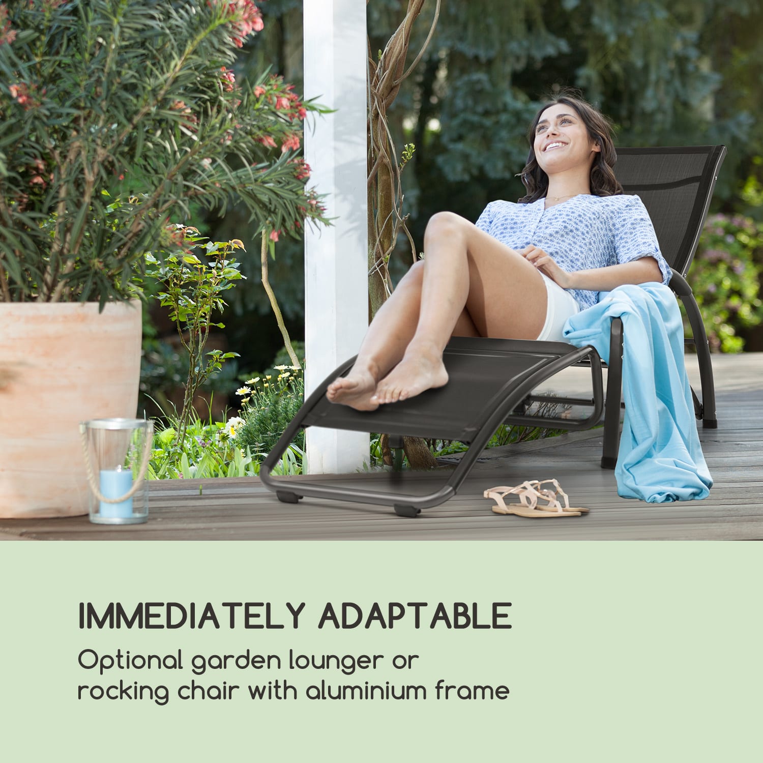Dokonalá relaxácia! záhradné lehátko Blumfeldt Beverlywood robí zo záhrady, balkóna a terasy oázu relaxu. Elegantný dizajn ležadla sa dokonale začlení do každej záhrady a zapôsobí svojou jednoduchou eleganciou. Na želanie dokonca ako hojdacie kreslo! lehátko ponúka plochu na oddych z priedušnej, pohodlnej sieťoviny comfort mesh, ktorá je ideálna v teplých slnečných dňoch a obzvlášť jednoducho sa čistí vďaka textilnej štruktúre s jednoduchou údržbou. V štyroch úrovniach vo výške 51 – 90 cm sa prispôsobí nastaviteľné operadlo kedykoľvek Vašim potrebám v niekoľkých jednoduchých krokoch. Výnimočné: v priebehu niekoľkých sekúnd sa stane zo záhradného ležadla hojdacie kreslo. Pritom stačí skopiť nadol diel pri nohách a upevniť ho zapadnutím do dvoch držiakov a môžete sa uvoľnene hojdať. Samozrejme, aj tu je operadlo nastaviteľné, čo dodatočne zvyšuje komfort. záhradné lehátko alebo hojdacie kreslo je nielen robustné s robustným hliníkovým rámom, ale aj obzvlášť ľahké a dá sa bez námahy hocikam premiestniť. záhradné lehátko Blumfeldt Beverlywood od spoločnosti Blumfeldt je ideálnou komfortnou zónou pre všetkých, ktorí chcú obohatiť svoj každodenný život dovolenkovými momentmi a chcú oddychovať aj v hojdacom kresle.
