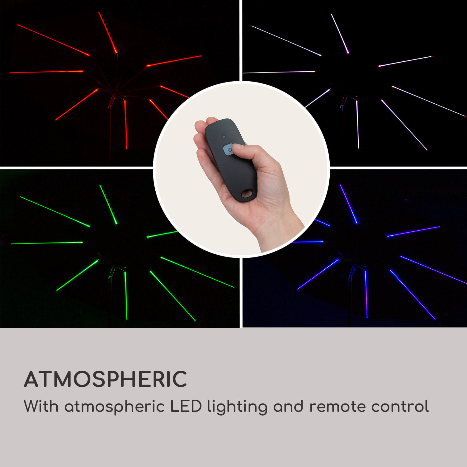 Slnečník Calais od blumfeldt poskytuje ideálnu ochranu pred slnkom počas dňa a večer šíri príjemne útulné svetlo. Jeho integrované LED osvetlenie funguje so solárnym panelom, ktorý sa nabíja počas dňa. Týmto spôsobom nie ste závislý od ďalšieho zdroja energie. Pod veľkým slnečníkom, ktorý sa dá flexibilne nastaviť, môžu byť v tieni ležadlá, stoly alebo sedenie. Montáž, upínanie a zarovnanie sú so slnečníkom Calais hračkou. Ak chcete tieniaci poťah rozložiť, otáčajte mechanickou kľukou a nastavte uhol sklonu pomocou tlačidla. Či už ide o dažďovú prehánku alebo silné poludňajšie slnko: poťah je vodo-odpudivý a vybavený ochranou proti UV žiareniu 50. Keď sa letný deň chýli ku koncu, stačí stlačiť diaľkové ovládanie a Calais sa stane pôsobivým zdrojom svetla.Užívajte si predĺžené slnečné dni až do neskorej noci: so slnečníkom Calais od blumfeldt.