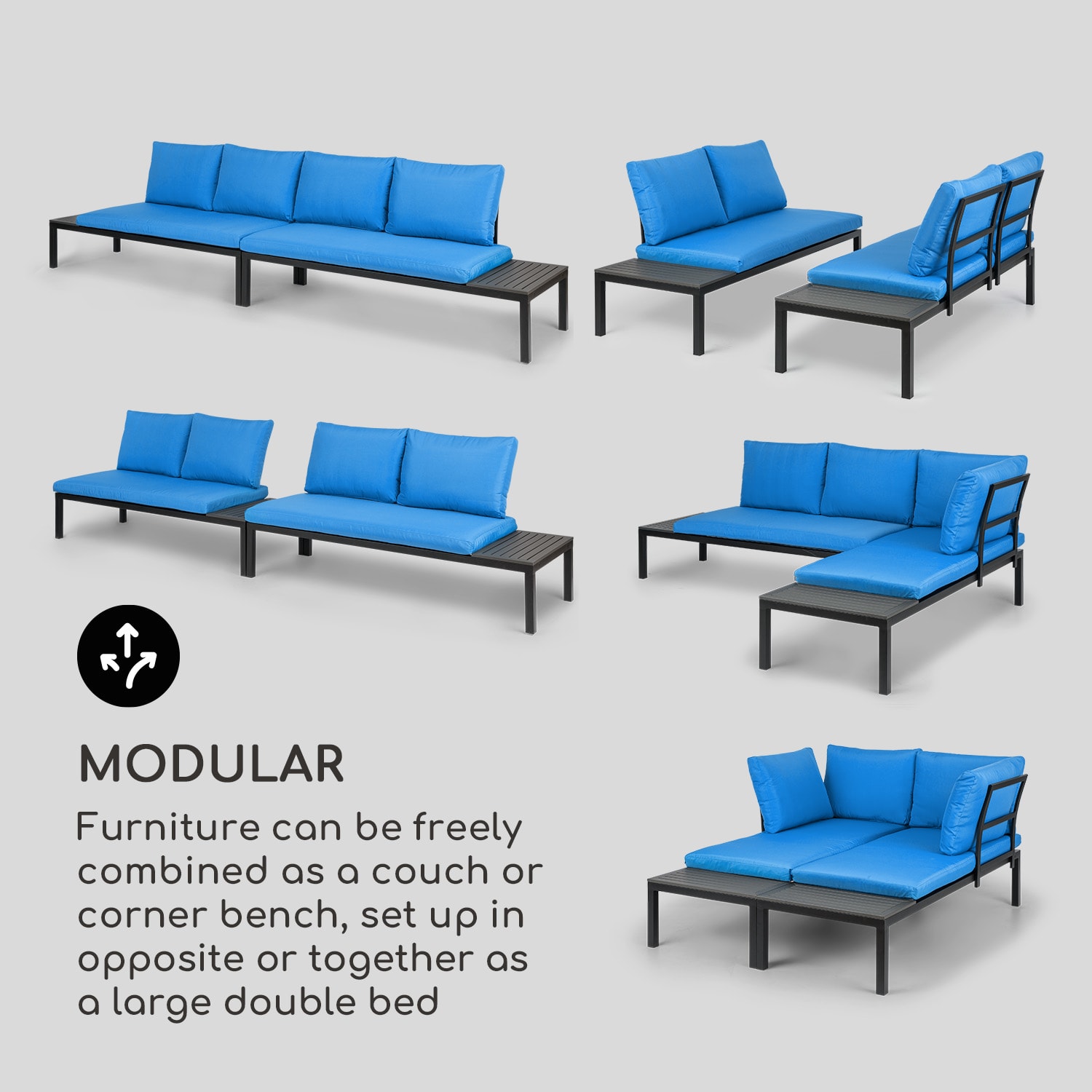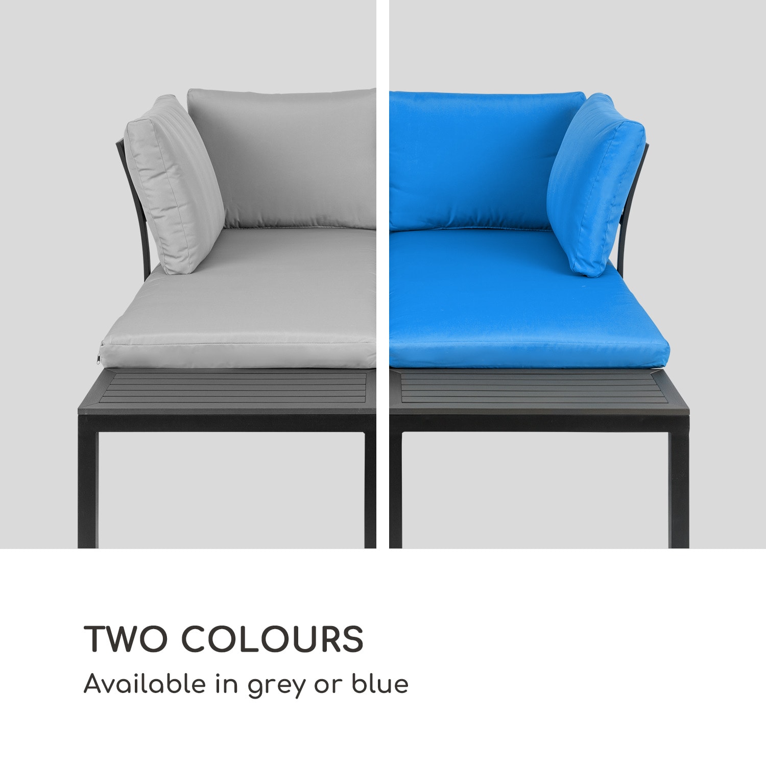 Ležadlo blumfeldt Cartagena zaručuje nielen najvyšší komfort, ale aj maximálnu flexibilitu pri jeho používaní. Ako záhradná súprava na posedenie pri káve s rodinou a priateľmi, ako útulná veľká plocha na ležanie pre romantický odpočinok vo dvojici alebo ako praktická lavica, určite nájdeš svoju kombináciu. Toto záhradné sedenie je ideálne pre každú príležitosť.Ležadlo blumfeldt Cartagena má pevný oceľový rám, ktorý bez problémov odolá hmotnosti až do 240 kg. Každé dvojsedadlo je pre pohodlné sedenie okrem toho vybavené hrubým čalúnením na sedenie a dvomi vankúšmi.Vďaka svojej mimoriadne flexibilnej možnosti montáže a nastavenia je ležadlo blumfeldt Cartagena skutočne šikovné. Dve dvojsedačky sa dajú použiť ako pohodlné dvojité ležadlo, ako záhradný nábytok alebo ako lavička. Opierky chrbta sa dajú flexibilne prispôsobiť tvojmu obľúbenému usporiadaniu. Okrem toho môžeš použiť obidve odkladacie plochy pri ležadlách z materiálu polywood ako stôl alebo podnožku celkom podľa svojich individuálnych potrieb. S dvomi čalúnenými podložkami a 4 vankúšmi môžeš pripraviť pohodlie pre seba aj svojich hostí. Rám z potiahnutých oceľových rúrok je odolný voči poveternostným vplyvom a vankúše aj poťahy sú nepremokavé.Uži si všestrannosť: so záhradným lehátkom blumfeldt Cartagena si vytvoríš svoju vonkajšiu oázu odpočinku presne tak, ako sa ti páči!