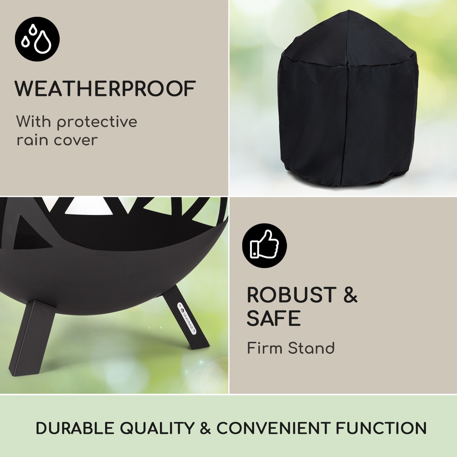 Ohnisko Colima od blumfeldt je romantické ohnisko, ktoré svojím neobvyklým dizajnom premení vašu záhradu alebo terasu na umeleckú oázu.Zažite útulnú atmosféru ako pri táboráku s výhľadom na hrejivé plamene: Ohnisko v tvare veľkej gule vyžaruje úchvatnú atmosféru, keď cez geometrické výklenky môžete sledovať mihotavé plamene. Takto je oheň chránený pred vetrom, a cez otvor vpredu môžete oheň ideálne rozložiť alebo uhasiť. Ohnisko Colima od blumfeldt je vďaka svojej 1,2 mm hrubej oceľovej stene veľmi robustné a bezpečne stojí na vyvýšenom stojane s tromi nožičkami. Tým sa pred teplom optimálne chráni aj podklad, napríklad trávnik alebo podlaha terasy. Pre dlhodobú radosť z ohniska ho chráni aj kryt pred dažďom a vetrom. Vďaka priloženému pohrabáču, roštu na drevené uhlie a popolníku môžete ľahko rozložiť oheň a užívať si večerný relax.