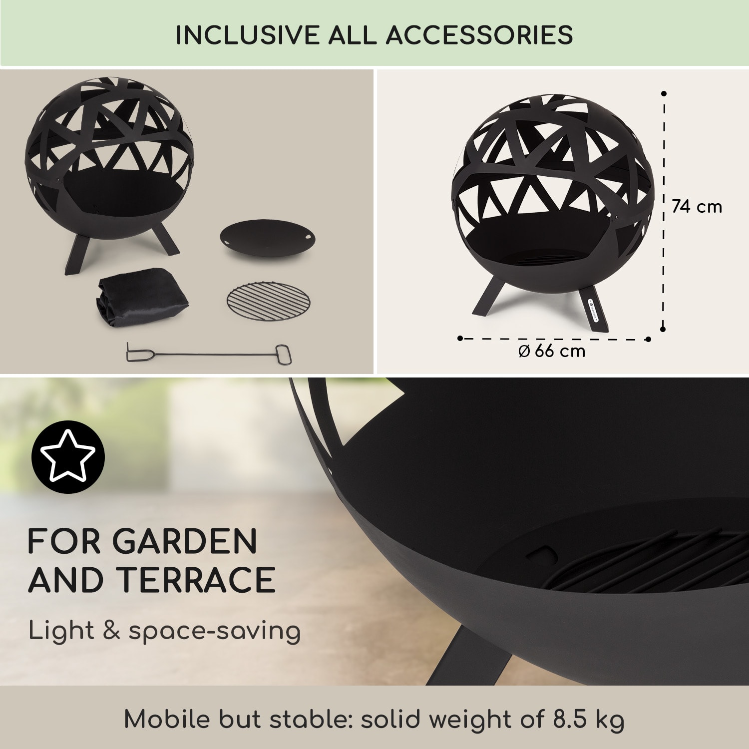 Blumfeldt Colima, ohnisko, Ø 66 cm, guľovitý tvar, rošt na drevené uhlie, popolník