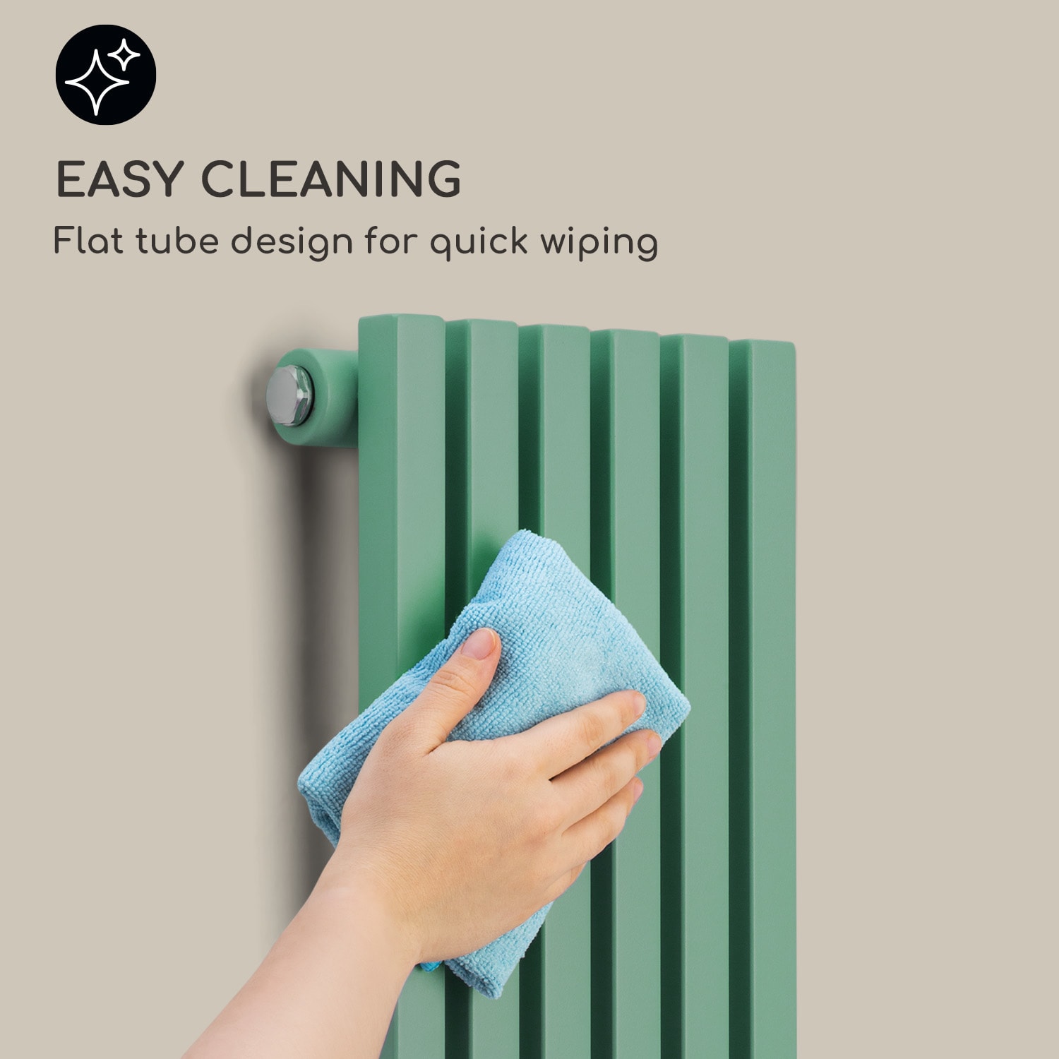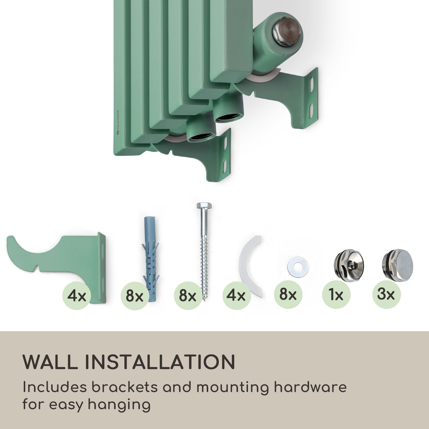 Útulné teplo pre domácnosť v modernom dizajne: radiátor Delgado 120 x 25 od Blumfeldt nielenže prináša do kúpeľne príjemnú teplotu, ale aj pekne vyzerá.Rúrkový radiátor Delgado 120 x 25 od Blumfeldt jednoducho integrujete do existujúceho teplovodného alebo diaľkového vykurovacieho systému a funguje aj s elektrickým ponorným ohrievačom alebo elektronickým termostatom. Poskytuje spoľahlivé a rovnomerné teplo v miestnostiach od 4 do 10 m². Pripojenie je veľmi jednoduché: konštrukcia 2 v 1 umožňuje pripojenie v strede aj na bočných rúrkach. Vďaka tomu dokáže Delgado optimálne reagovať na mnohé konštrukčné podmienky. Potrebné nástenné konzoly sú tiež priamo súčasťou balenia. Stabilný systém rúrok z práškovo lakovaného kovu optimálne vedie a rozvádza teplo až do 70 °C. Vďaka 6 vertikálnym vykurovacím trubiciam má tiež optimálne zväčšenú plochu a dosahuje tak tepelný výkon až 508 W.Vďaka špeciálnemu vertikálnemu dizajnu so šírkou 45 cm a hĺbkou 6,5 cm sa dokonale hodí do všetkých miestností s obmedzeným priestorom alebo bez neho. Vďaka medzerám medzi 6 rúrkami sa radiátor veľmi jednoducho čistí. Útulné teplo priamo po sprche alebo kúpeli s radiátorom Delgado 120 x 25 od Blumfeldt – štýlový zážitok.