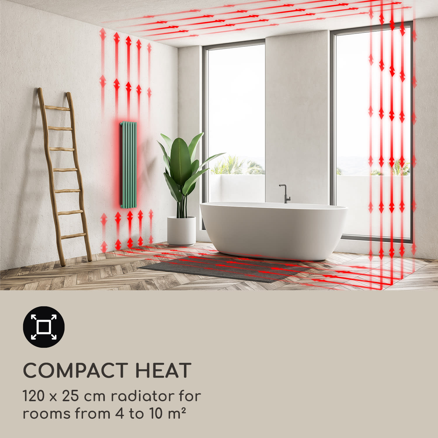 Blumfeldt Delgado, 120 x 25, radiátor, kúpeľňový radiátor, rúrkový radiátor, 508W, teplá voda, 1/2