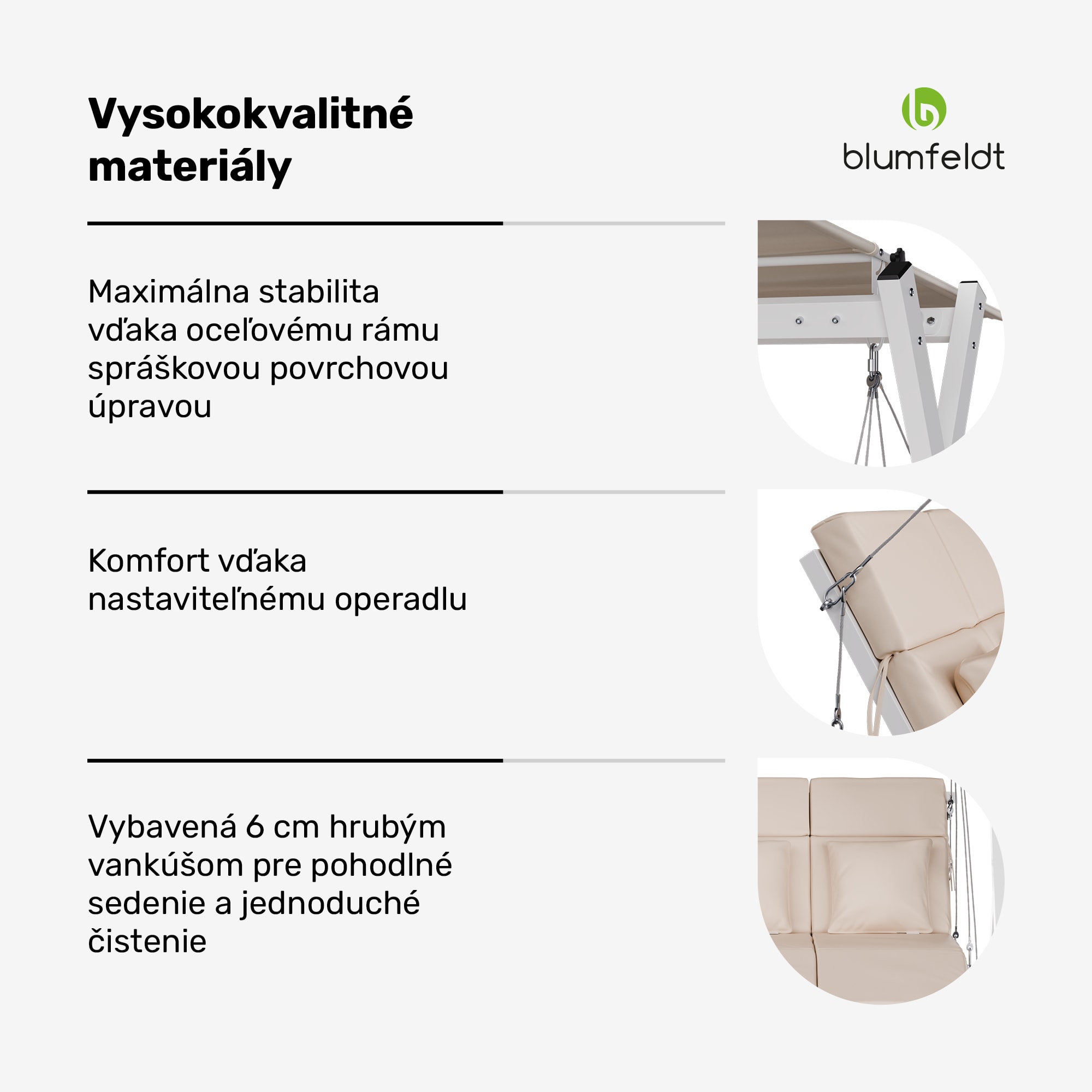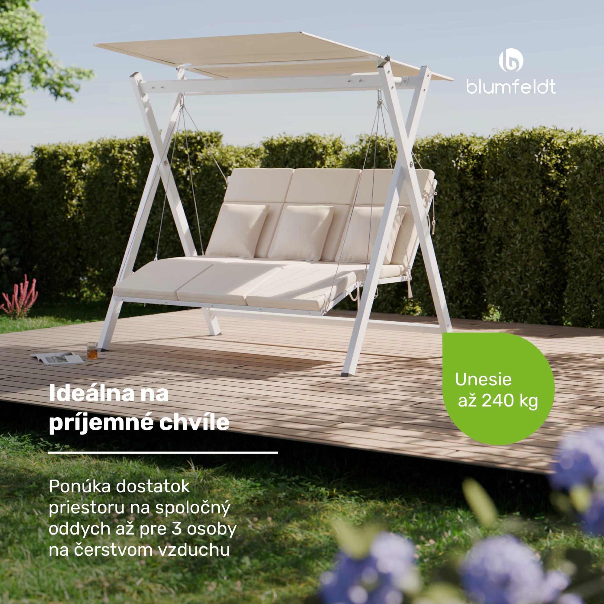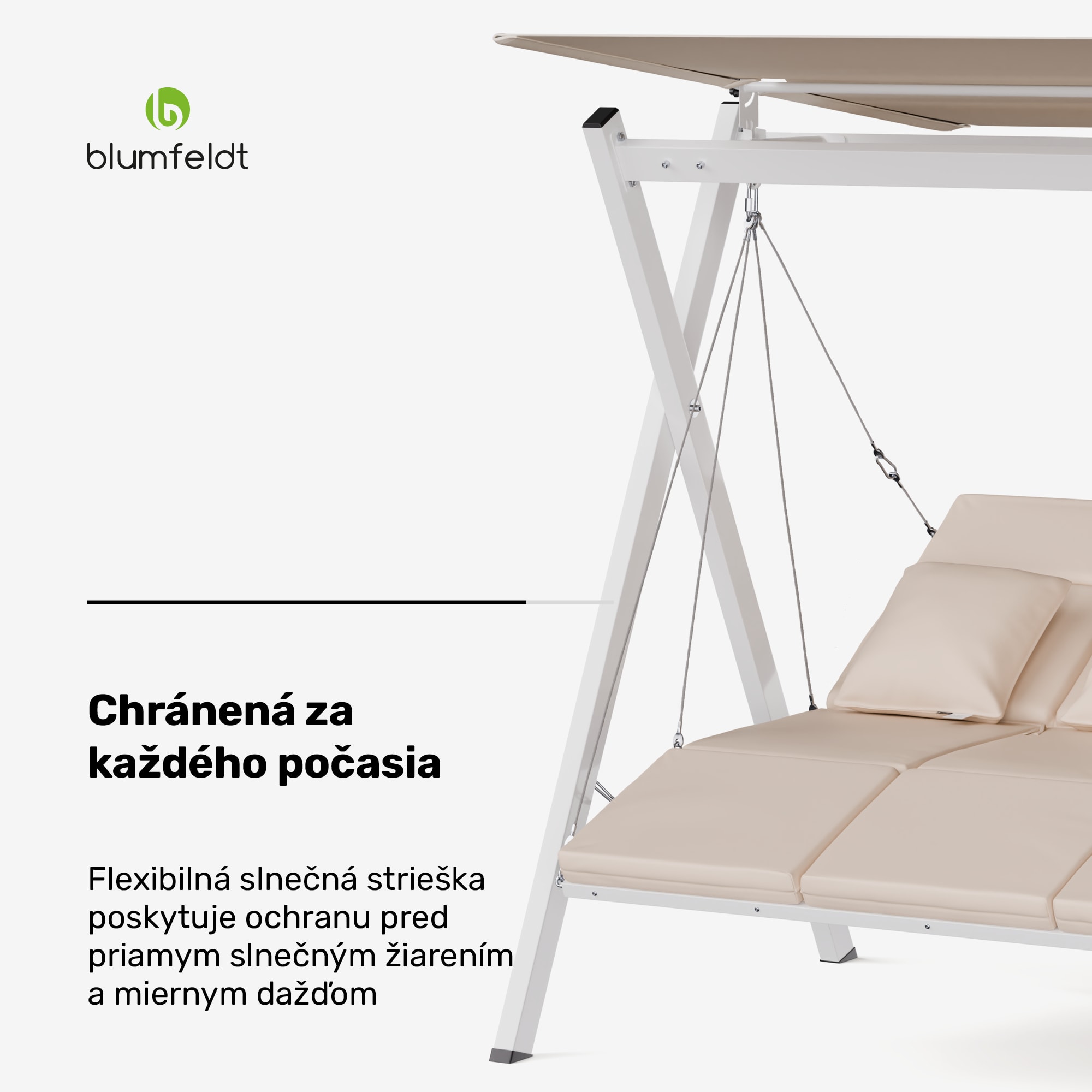 Blumfeldt FlexiSwing hollywoodska hojdačka 3-miestna Nastaviteľné operadlo + slnečná strieška, odolná voči poveternostným vplyvom
