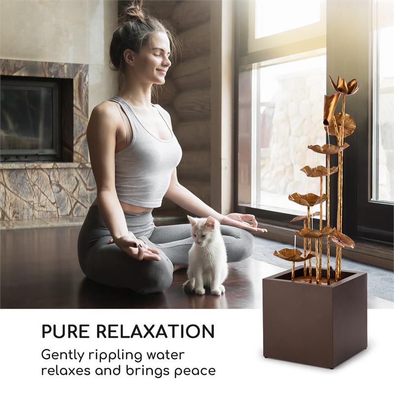 Jednoducho vypnúť a nasávať novú energiu: záhradná fontána Blumfeldt Golden Orchid je zurčiaci prameň novej energie a záhradu, balkón či byt premení na útočisko uvoľnenia. Voda z vrchnej časti pripomínajúcej kvet orchidey sa jemne vylieva cez viaceré kvetné lístky a poteší jemným žblnkaním. Fontána Golden Orchid zhotovená zo zinku pritom nie je iba mimoriadne masívna a odolná, ale klamlivo vzbudzuje dojem, že sa pozeráte na fontánu z ozajstnej mosadze. Aby sa vodná hra nikdy neunavila, pumpa s výkonom 5 W zabezpečí neustálu cirkuláciu vody. Vďaka extra dlhému sieťovému káblu s dĺžkou 10 m je možné fontánu voľne umiestniť, všade si nájde perfektné miesto. Prináša oddych do záhrady aj bytu: záhradná fontána Golden Orchid od spoločnosti Blumfeldt.