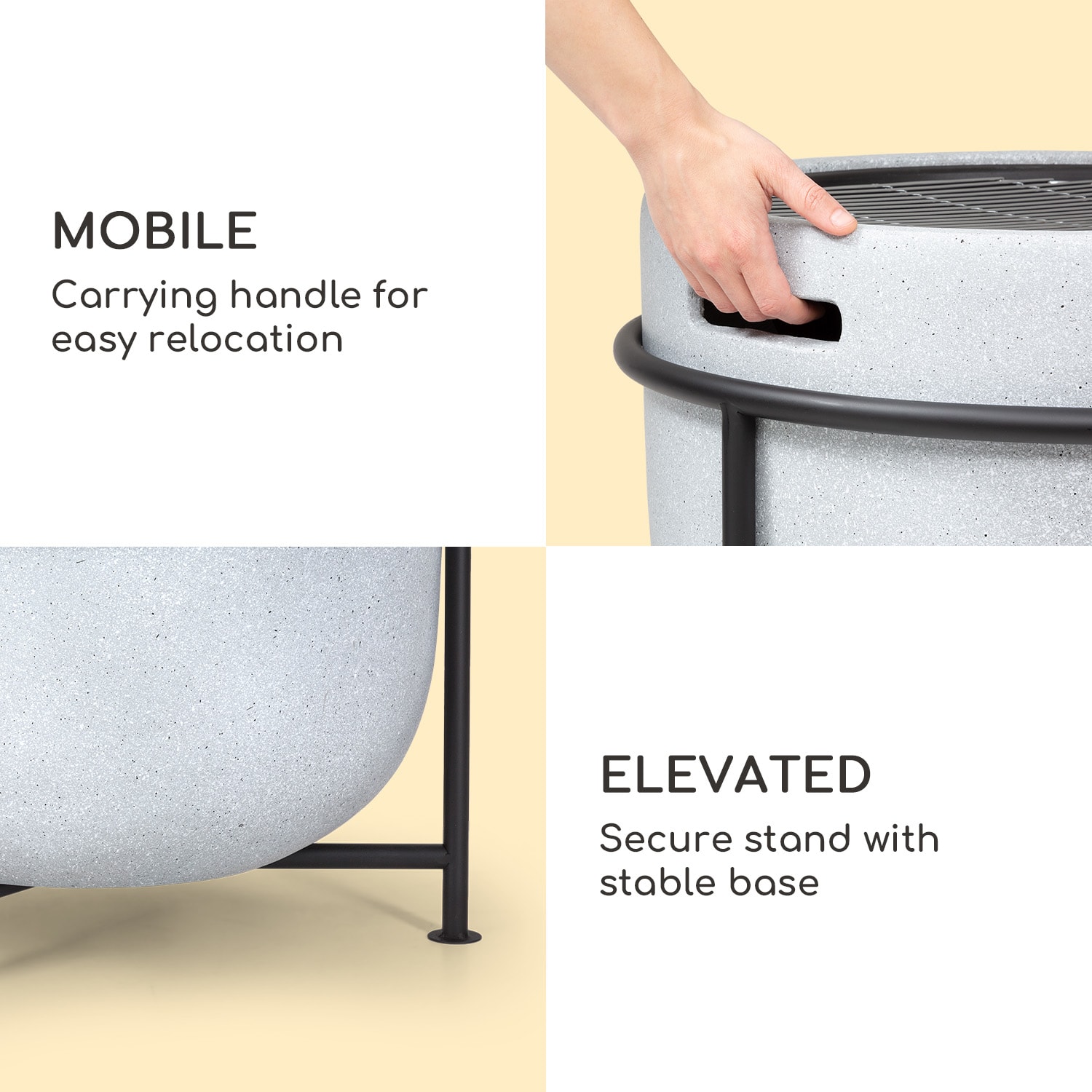 Oheň pod hviezdnou oblohou a pohodlné grilovanie: vychutnajte si neopakovateľnú atmosféru otvoreného ohňa a šťavnaté upečené pochúťky v spoločnosti rodiny a priateľov s ohniskom a grilom v jednom Grail od blumfeldt.Pútavé ohnisko je vyrobené z robustného a ľahkého MGO (Magnesium Fiberclay) a kvalitného oceľového plášťa. Okrúhly moderný tvar je skutočnou pastvou pre oči a ideálne sa hodí do každej záhrady. Keď na vrch položíte pochrómovaný oceľový grilovací rošt, pohoda plynúca z plápolajúcich plameňov sa rázom zmení na prskajúce chute grilovaných klobás, steakov, zeleninových špízov alebo dokonca grilovaného syra. Súčasťou balenia je aj praktický ochranný kryt proti iskrám, ktorý chráni všetky okolostojace osoby a okolie pred nekontrolovaným odletom iskier. Vďaka dvom bočným držadlám na prenášanie možno ohnisko s grilom Grail od blumfeldt kedykoľvek ľahko premiestniť.
