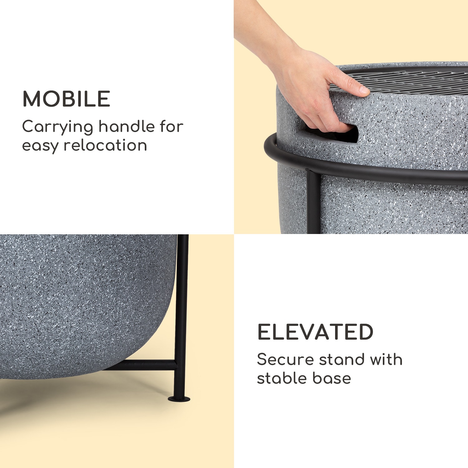 Oheň pod hviezdnou oblohou a pohodlné grilovanie: vychutnajte si neopakovateľnú atmosféru otvoreného ohňa a šťavnaté upečené pochúťky v spoločnosti rodiny a priateľov s ohniskom a grilom v jednom Grail od blumfeldt.Pútavé ohnisko je vyrobené z robustného a ľahkého MGO (Magnesium Fiberclay) a kvalitného oceľového plášťa. Okrúhly moderný tvar je skutočnou pastvou pre oči a ideálne sa hodí do každej záhrady. Keď na vrch položíte pochrómovaný oceľový grilovací rošt, pohoda plynúca z plápolajúcich plameňov sa rázom zmení na prskajúce chute grilovaných klobás, steakov, zeleninových špízov alebo dokonca grilovaného syra. Súčasťou balenia je aj praktický ochranný kryt proti iskrám, ktorý chráni všetky okolostojace osoby a okolie pred nekontrolovaným odletom iskier. Vďaka dvom bočným držadlám na prenášanie možno ohnisko s grilom Grail od blumfeldt kedykoľvek ľahko premiestniť.