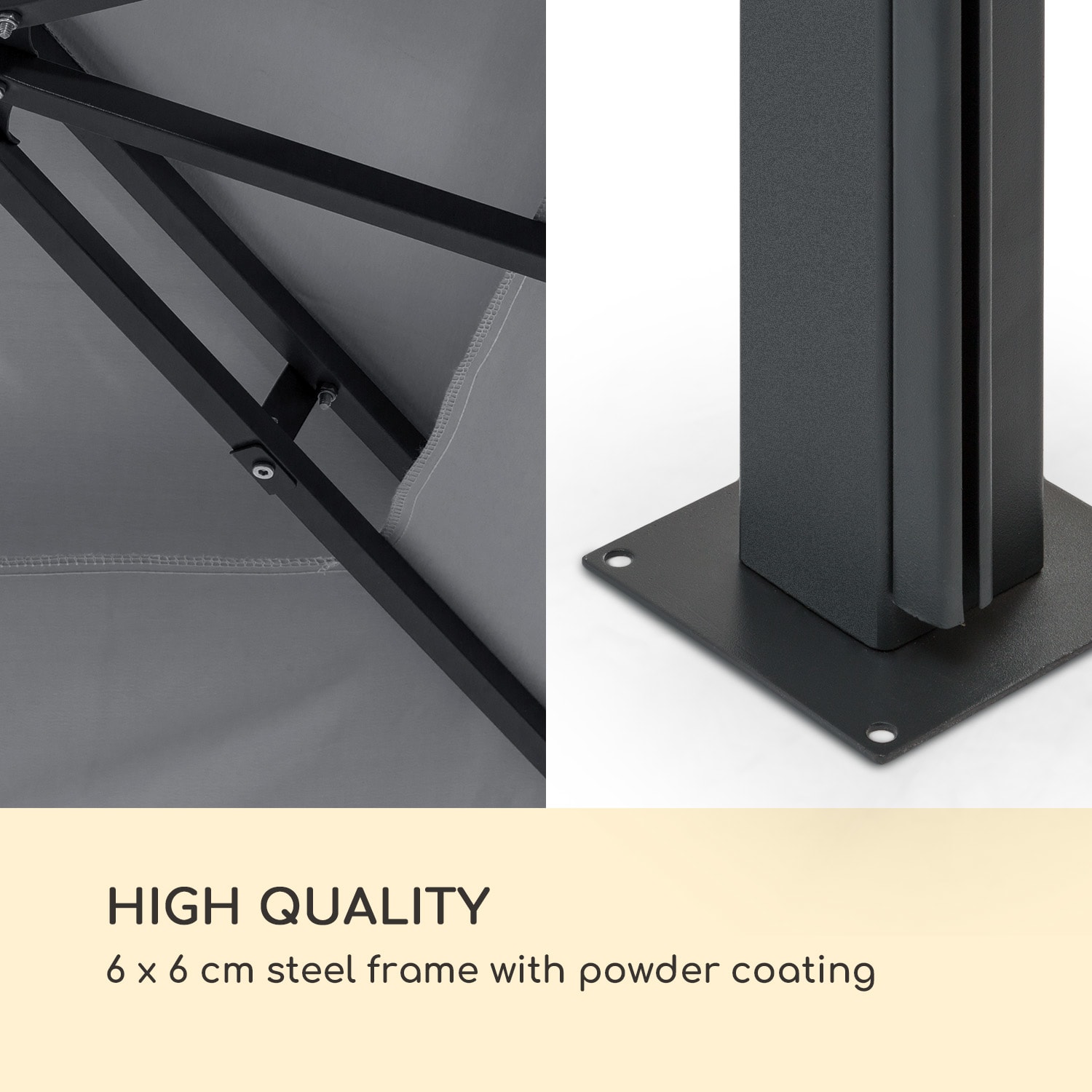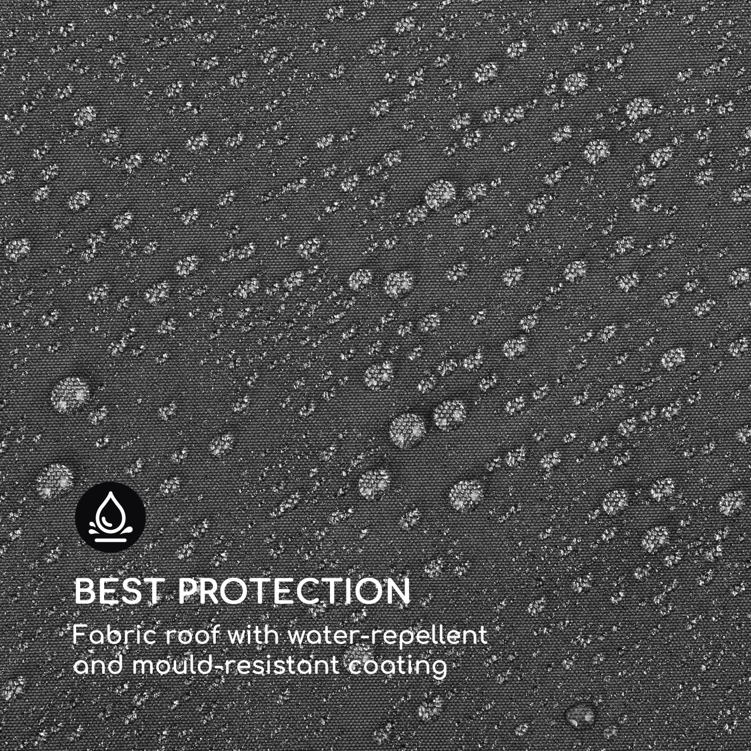 Leto pod holým nebom – v každom počasí! Záhradná pergola blumfeldt Grandezza Cortina je vzdušné útočisko tieňa, odolné proti poveternostným vplyvom.Príjemné hodiny v záhradnej idylke s priateľmi a rodinou: Grandezza Cortina s krytou plochou takmer 3 × 6 metrov ponúka dostatok priestoru na oddych pod strechou vyrobenou z 180 g/m² polyesteru s nepremokavým povrchom odolným proti plesniam. 6 × 6 cm rám z ocele tiež zaručuje maximálnu stabilitu a vďaka práškovo lakovanej povrchovej úprave je chránený pred koróziou.Štyri flexibilné bočné panely sú užitočné predovšetkým pri šikmom slnečnom svetle, vetre alebo daždi, pričom každý z bočných dielov je možné jednotlivo otvárať a zatvárať pomocou rolovacieho mechanizmu. Sú vyrobené z polyesteru, ktorý možno prať. Pri montáži konštrukcie sa odporúča zaistiť, aby boli stojany ukotvené v zemi vo zvislej polohe, aby sa zabezpečil hladký proces navíjania a odvíjania bez záhybov.Poskytuje tieň v horúcich letných dňoch a spoľahlivú ochranu pred vetrom a dažďom: záhradná pergola Grandezza Cortina od spoločnosti blumfeldt.