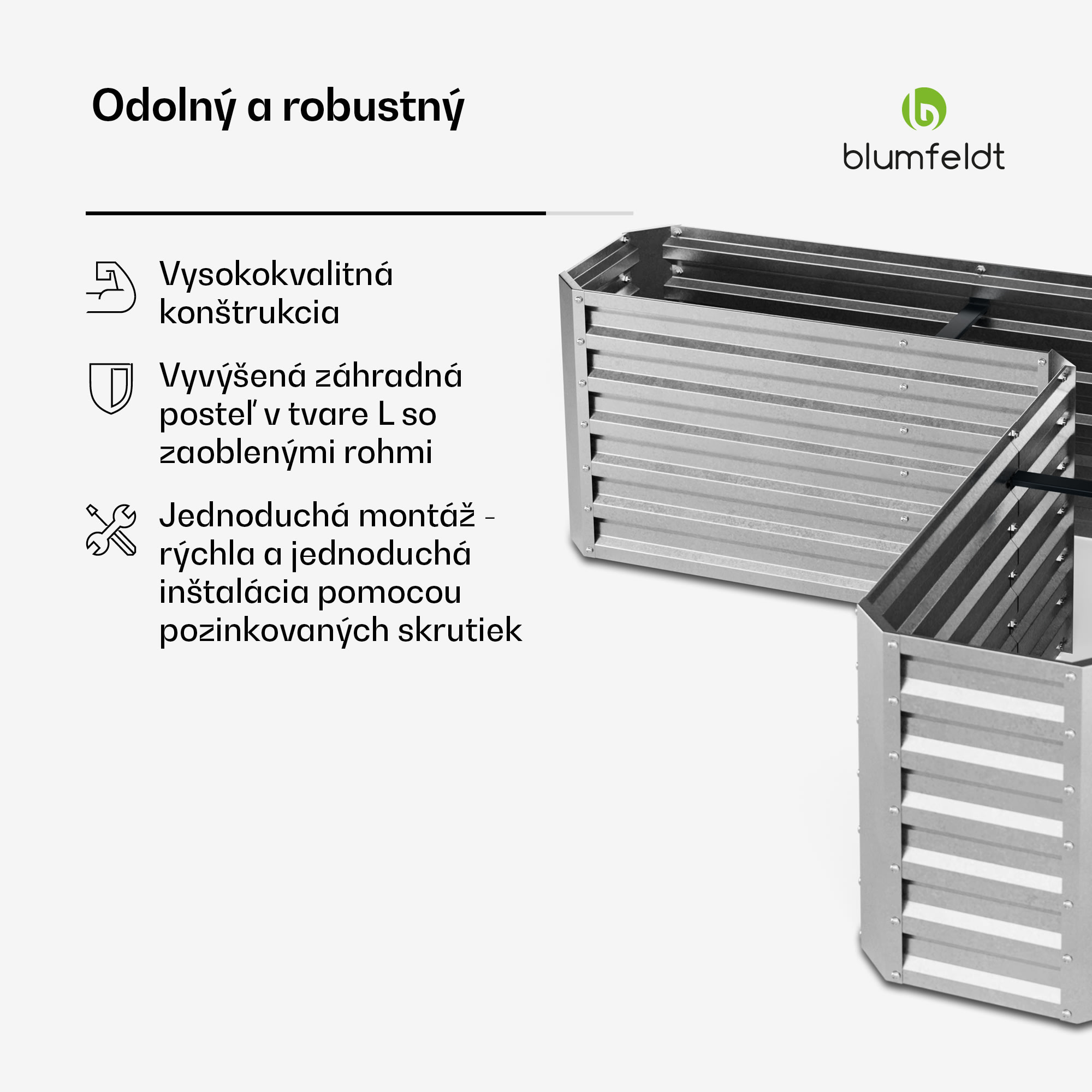 Blumfeldt High Grow vyvýšený záhon, tvar L, odolný voči poveternostným vplyvom, odolný voči korózii, robustný, 742 L