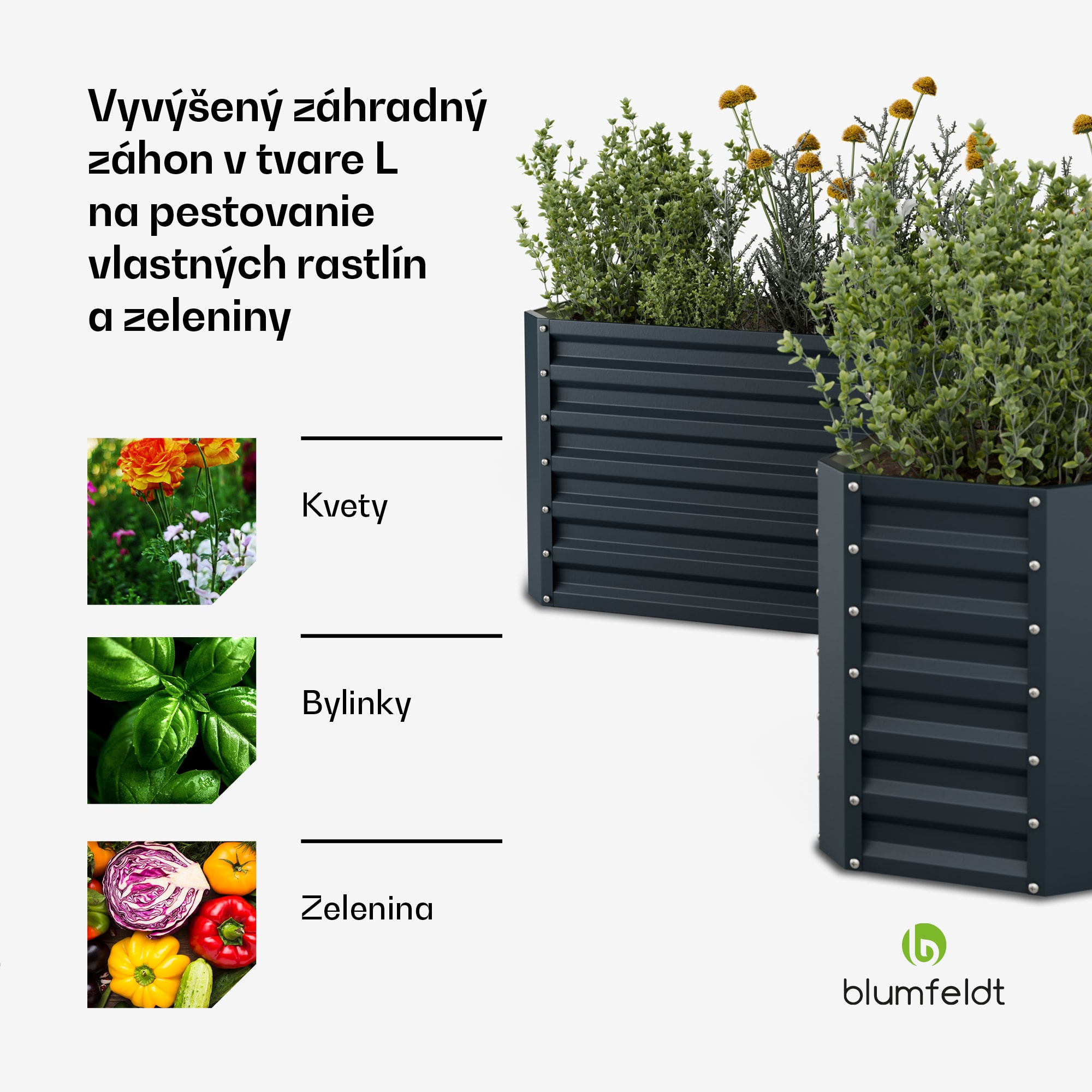 Blumfeldt High Grow vyvýšený záhon, tvar L, odolný voči poveternostným vplyvom, odolný voči korózii, robustný, 742 L –Kúpiť