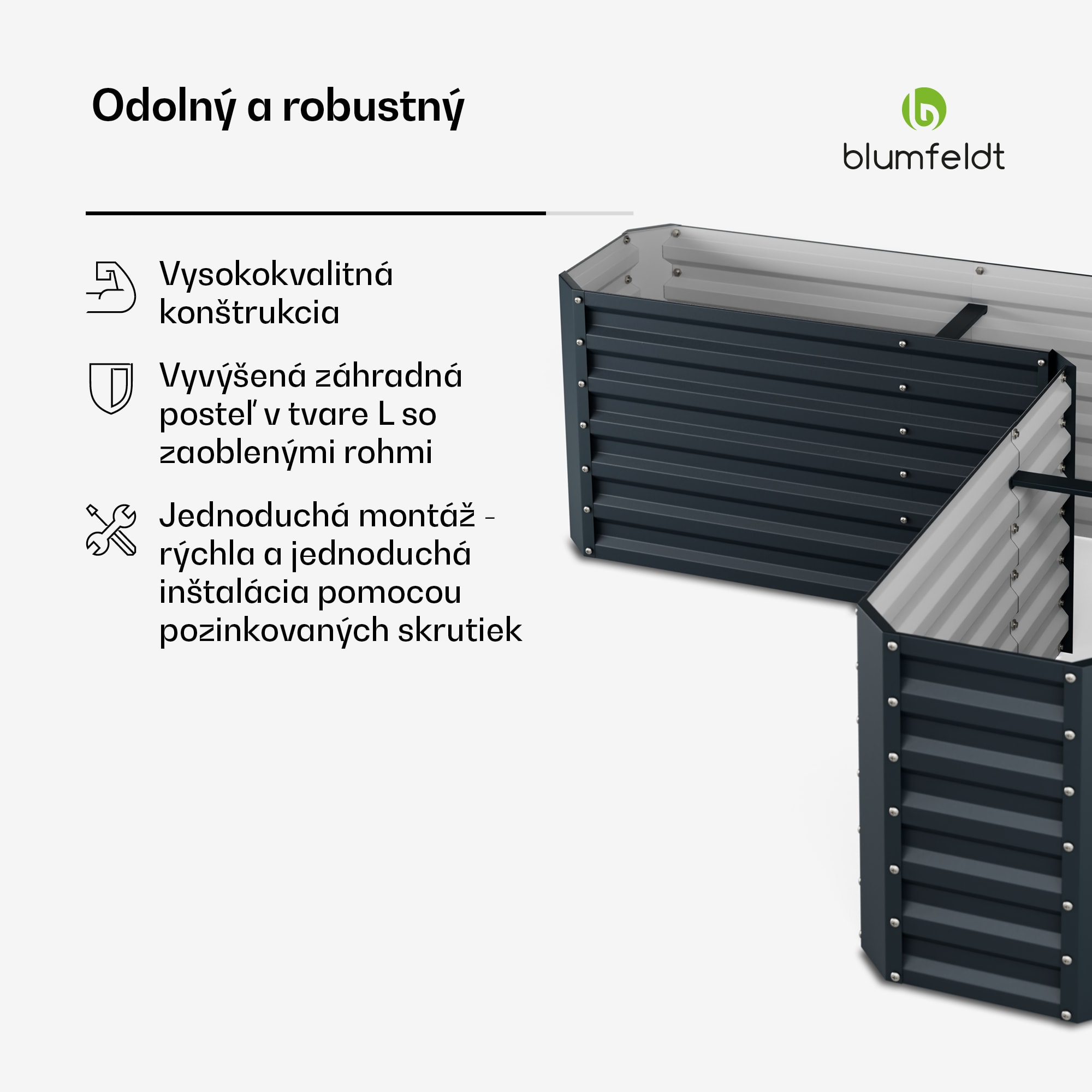 Blumfeldt High Grow vyvýšený záhon, tvar L, odolný voči poveternostným vplyvom, odolný voči korózii, robustný, 742 L
