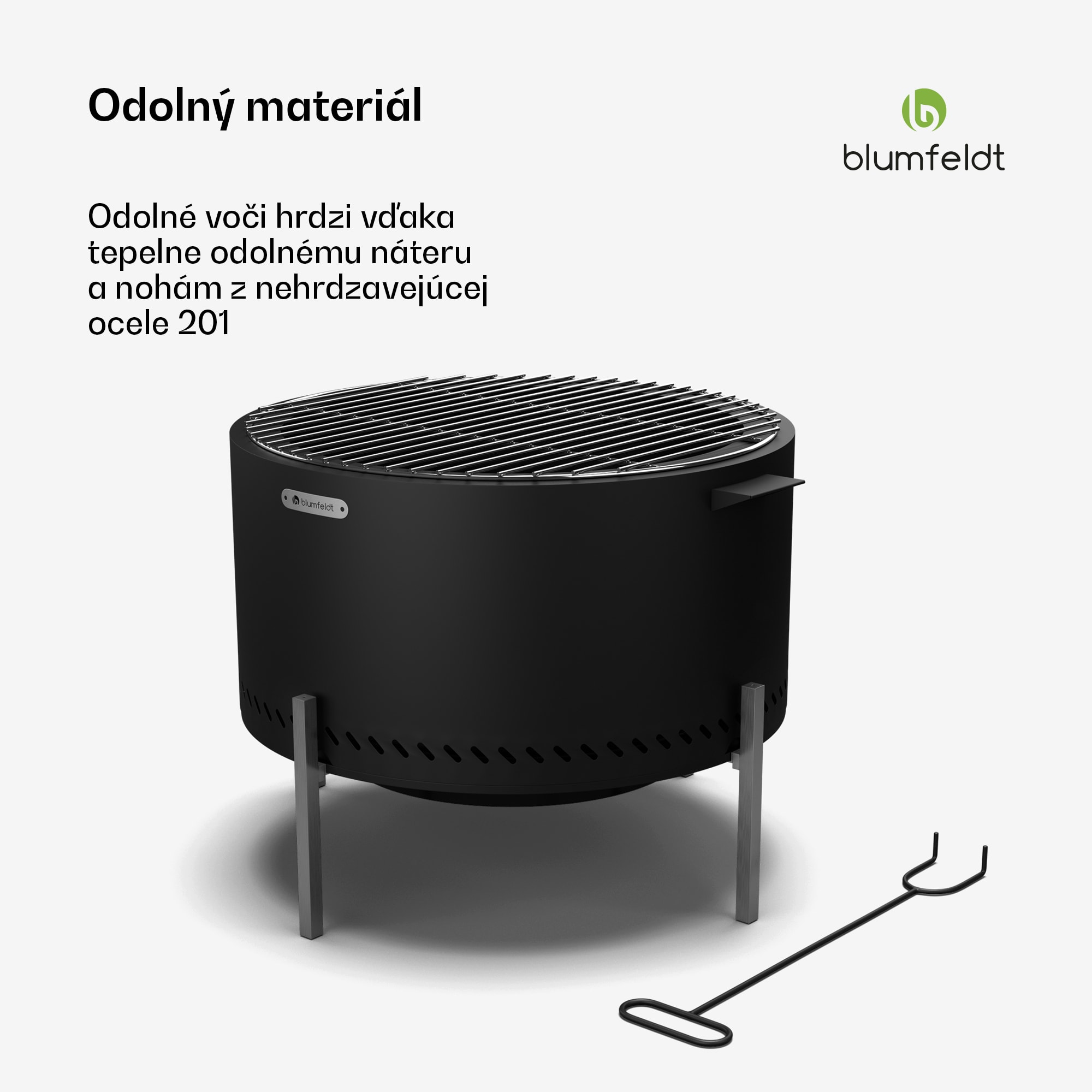 Ohnisko Blumfeldt Ignite Pure je ideálnym riešením pre útulné vonkajšie večery, kempingové výlety a spoločenské stretnutia vonku. Vďaka efektívnej konštrukcii zabezpečuje takmer bezdymový oheň, pretože vzduchové otvory optimalizujú prúdenie vzduchu a proces horenia. Výsledkom je, že drevo horí s minimom dymu, iskier, popola a zápachu. Rám je vyrobený z nehrdzavejúcej ocele 201 a ohnisko má čierny povrch odolný voči vysokým teplotám, vďaka čomu je mimoriadne odolné. Je kompaktné a prenosné, čo ešte viac uľahčujú praktické rukoväte a kryt proti dažďu s rukoväťami, ktorý je súčasťou dodávky. Vďaka vyberateľnému popolníku, ktorý sa vďaka odkrytej základni rýchlejšie ochladzuje, je čistenie hračkou. Rám sa dá otočiť, čo umožňuje dve rôzne výšky. Vďaka priloženej grilovacej doske je ohnisko ideálne na grilovanie a spoločenské stretnutia.Ohnisko Blumfeldt Ignite Pure je vďaka svojmu inovatívnemu dizajnu, vysokokvalitným materiálom a všestranným možnostiam použitia dokonalým spoločníkom na relaxačné večery vonku.