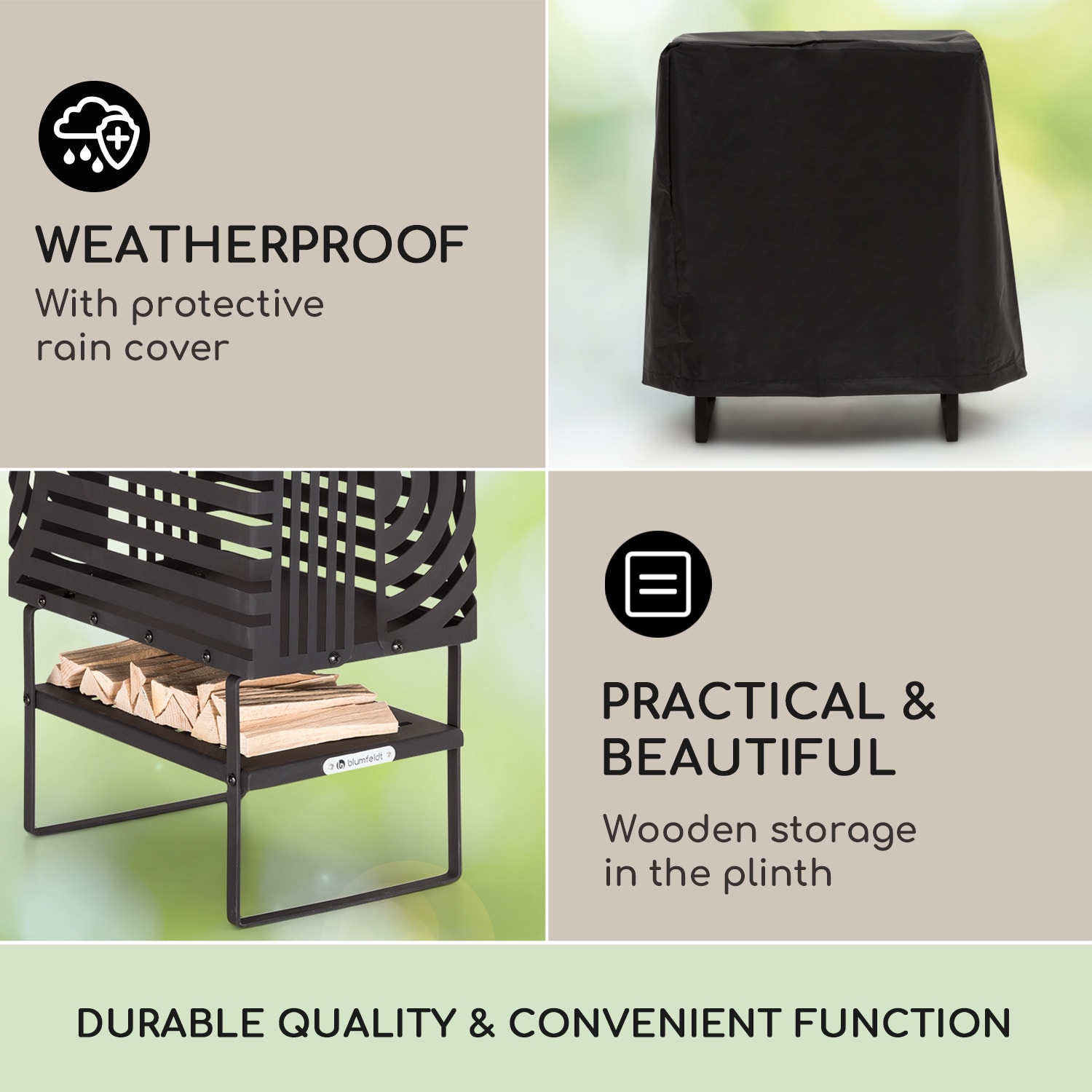 Ohnisko Krakatoa od blumfeldt z 2 mm hrubej ocele je romantickým ohniskom, ktoré svojím neobvyklým dizajnom premení vašu záhradu alebo terasu na umeleckú oázu. Vďaka jednoduchej funkčnosti môžete praktické ohnisko flexibilne nastaviť a ľahko zapáliť hrejivý oheň. Keď sa cez geometrické výklenky pozeráte na mihotanie plameňov, vnímate ako sa šíri úchvatná atmosféra. K malému ohnisku máte kedykoľvek prístup z každej strany a spodná polička na polená a pohrabáč vám pomáhajú pri zakladaní ohňa ako zdroja svetla a tepla. Vyvýšená konštrukcia optimálne chráni zem, napríklad trávnik alebo podlahu terasy, pred teplom a kryt proti dažďu chráni vaše nové ohnisko pred vetrom a poveternostnými vplyvmi. Vďaka nožičkám z 3 mm hrubej ocele je stabilita stojana zaručená.