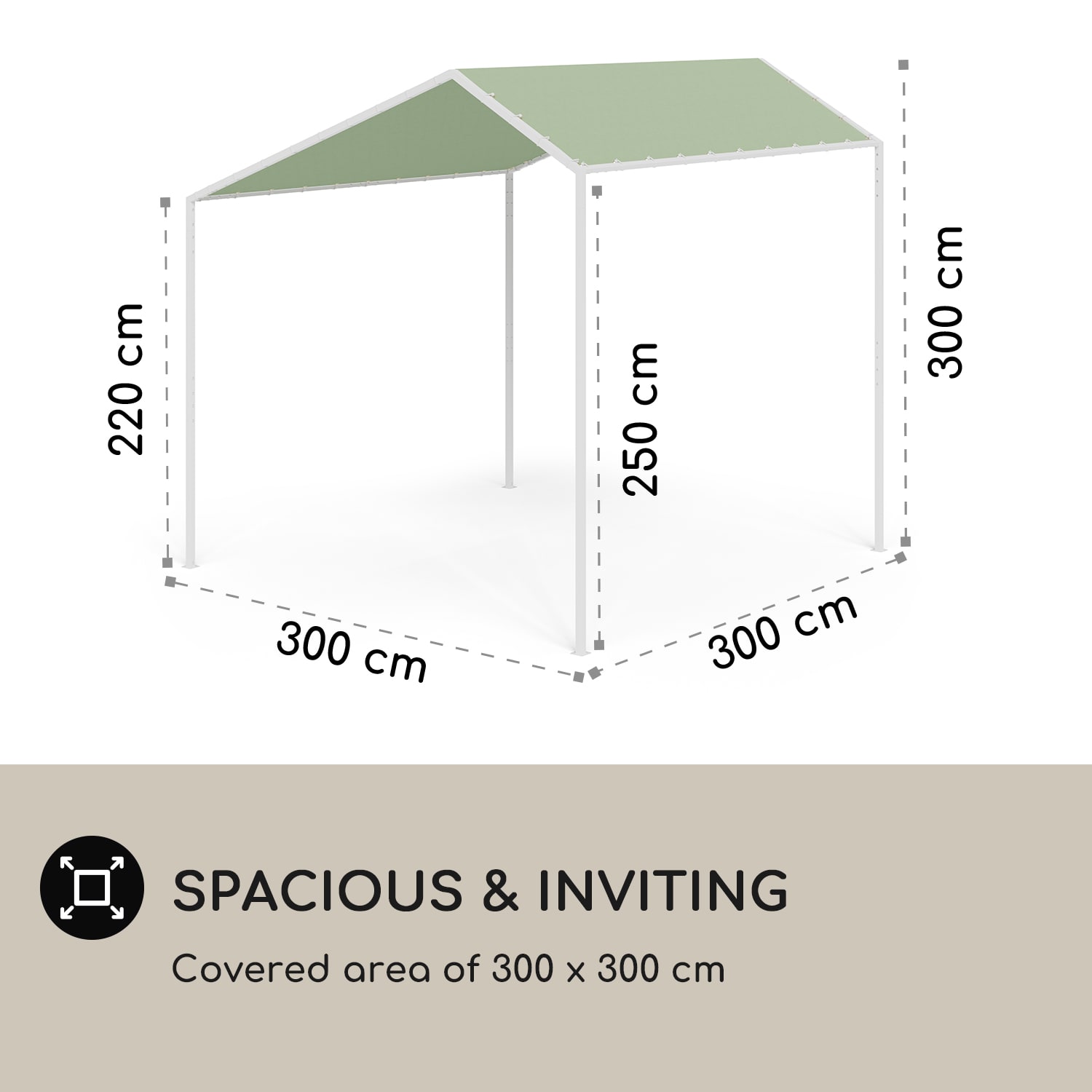 S Gazebo La Rochelle od blumfeldt sa budete cítiť ako Boh vo Francúzsku. Markíza spoľahlivo zatieni plochu 3 x 3 m a vďaka jednoduchému systému poskladania ju rýchlo zostavíte vo vašej záhrade. Strechu altánku môžete jednoducho upevniť pomocou priložených gumičiek. Štíhly dizajn so šikmou strechou krásne zapadne do vášho vonkajšieho priestoru. Jeho hliníkový rám zabezpečuje stabilitu a vodoodpudivý strešný povrch chráni pred priamym slnečným žiarením vďaka triede ochrany proti UV žiareniu 50+. Pergola La Rochelle od blumfeldt premení miesta na sedenie vo vašej záhrade na komfortné zóny plné oddychu.