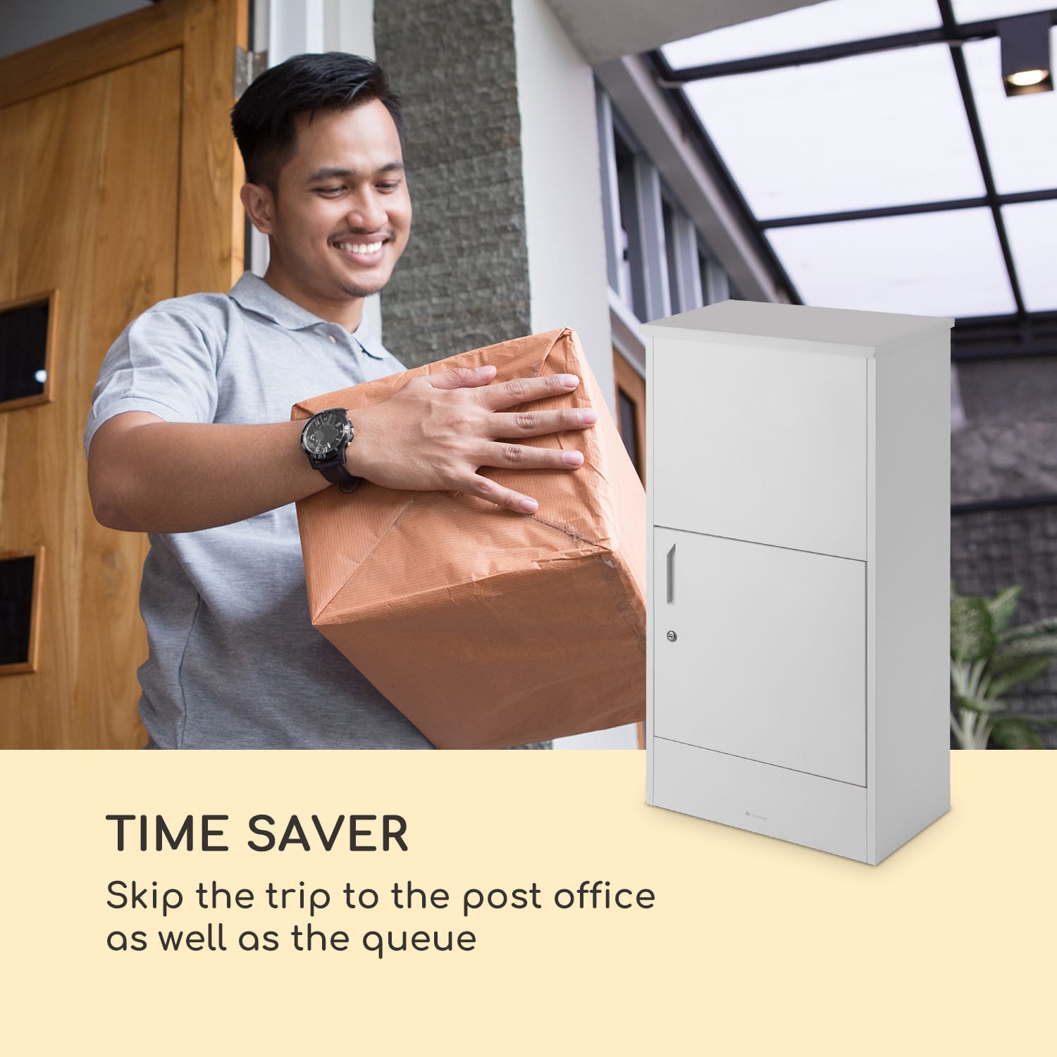 S balíkoboxom blumfeldt London White už nikdy viac nepremeškáš dodanie balíku a už ich nebudeš musieť hľadať u tvojich susedov.Kto v budúcnosti už nechce stáť v dlhých radoch na pošte, sa poteší poštovej schránke na balík blumfeldt London White. Do štýlového a voľne stojaceho balíkoboxu sa vmestia malé až stredne veľké balíky s rozmermi 46 x 35 x 22 cm – samozrejme aj štandardné a maxi listové zásielky.Voľne stojaca poštová schránka sa dodáva už v zmontovanom stave a je vyrobená z galvanizovanej ocele, prášková vrstva laku dodáva London White odolnosť voči poveternostným vplyvom a hrdzi. Aby bolo zachované listové tajomstvo, sú 1 mm hrubé zadné dvierka vybavené kruhovým zámkom. Balíkobox sa dá dodatočne ukotviť do zeme. V stojane sa na to nachádzajú predvŕtané diery na ukotvenie do zeme.Poštovú schránku na balík blumfeldt London White môže použiť každá zásielková služba. Takto odteraz ušetríš čas na cestu na poštu vrátane čakania v rade. Upozornenie: Aby bolo možné doručovateľovi odovzdať zásielku bez podpisu, mali by ste so svojou balíkovou službou podpísať takzvanú „garážovú zmluvu“.
