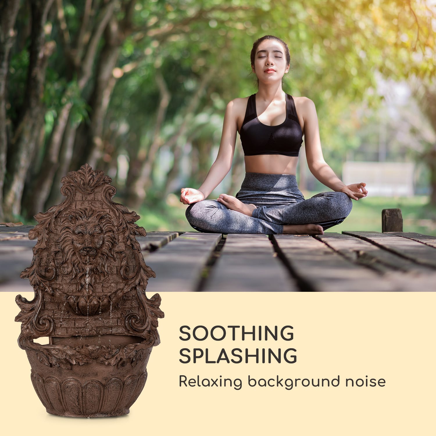 Ako levia hlava, ktorá chrlí vodu, zdobí solárna fontána blumfeldt Leo holé steny nádherným spôsobom – vnútri aj vonku. Vďaka imitácii prírodného kameňa, ornamentom, rustikálnej hrdzavej povrchovej úprave a starogréckemu vzhľadu prenáša pôsobivo svoje okolie späť do staroveku.Veľkolepá, no úsporná: exkluzívna nástenná fontána získava svoju energiu výlučne zo slnka a nepotrebuje vodovodnú prípojku, aby premenila tvoju záhradu alebo terasu na grécku vodnú krajinu. So solárnou energiou poháňa malé čerpadlo Loopflow Concept, ktoré umožní za hodinu prúdiť 200 litrom vody vždy znovu dookola cez solárnu fontánu. Externý solárny panel môžeš umiestniť optimálne na slnko vďaka pripojenému hrotu do zeme a káblu s dĺžkou 5 metrov. Dodávaná lítiová batéria uchováva energiu na nepretržitú prevádzku. Malý LED veniec so 4 bielymi svetlami sa postará o mystické osvetlenie v šere alebo v noci. Rozžiari žblnkajúcu vodu a vytvára vo vode trblietavé odlesky. Osvetlenie je okrem toho ekonomické v spotrebe, pretože sa zapína automaticky v prítmí a pri dopade svetla sa opäť vypne.Ekonomická a ekologická solárna fontána Leo od spoločnosti blumfeldt pripomína staroveké Grécko a prekvapuje svojím mýtickým vyžarovaním. Relaxuj pri jemnom žblnkote, zatiaľ čo si voda hľadá cestu z papule leva do umelecky zdobenej, osvetlenej zbernej nádoby.