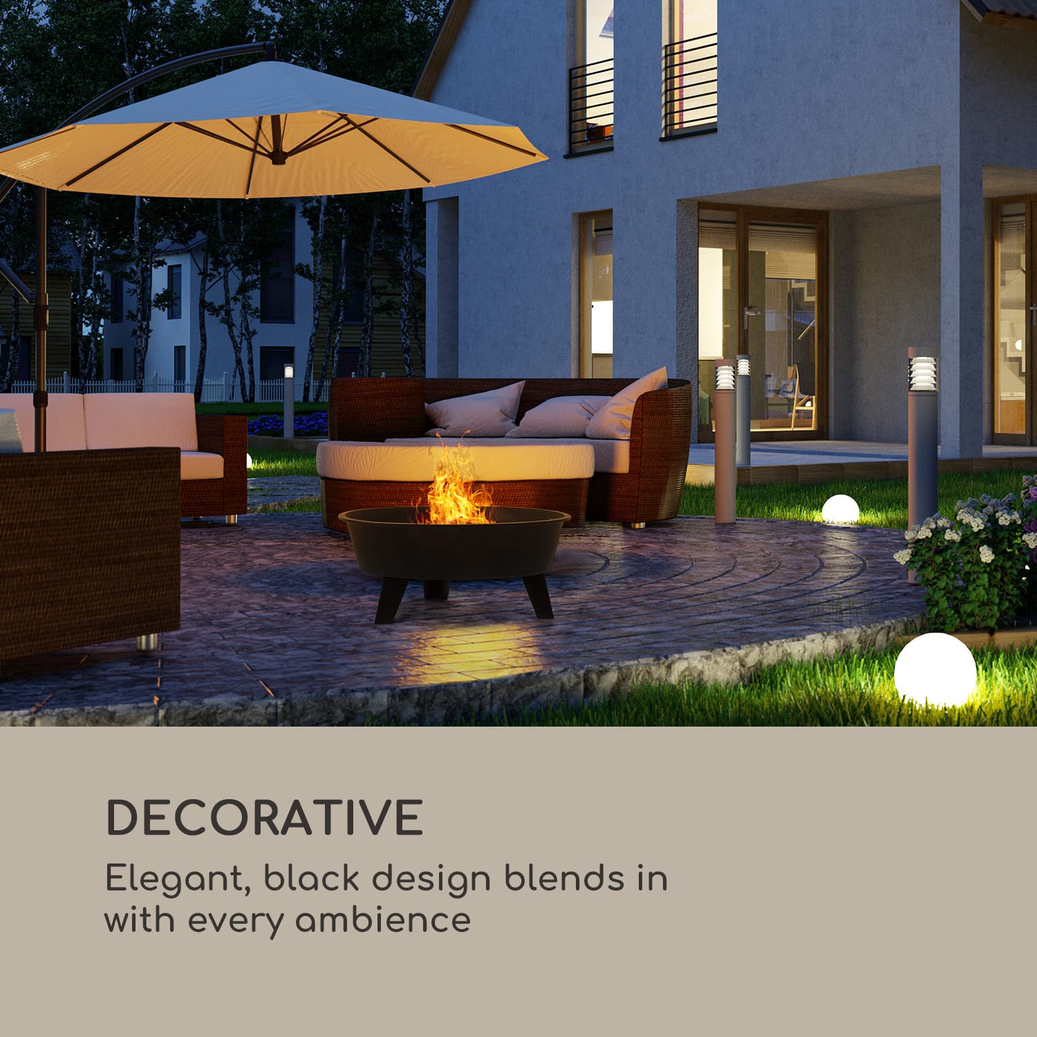 Spojte príjemnú atmosféru otvoreného ohňa s príjemnými výhodami kvalitného grilu s 2 v 1 nádobou na oheň Blumfeldt Nolana. Nádoba na oheň Blumfeldt Nolana s priemerom 73 cm poskytuje dostatok priestoru pre veľký táborák z polienok, dreveného uhlia alebo grilovacích brikiet. Jednoduchá a elegantná základňa nádoby sa dvíha šikovne do výšky pre ešte lepší dojem z plápolajúceho ohňa. Oceľový lapač iskier z mriežkovej siete chráni ohnisko pred vystupujúcou horúčosťou a lietajúcimi iskrami. Súčasťou balenia je kutáč, pomocou ktorého je možné horiace kusy dreva jednoducho posunúť na bok pri dopĺňaní paliva či zakladaní ohňa. Pre ešte príjemnejšie posedenie má nádoba na oheň k dispozícii pripojiteľný grilovací rošt z ušľachtilej ocele s priemerom 64 cm, ktorý veľmi jednoducho obslúži rodinu, priateľov aj hostí. Či už s plameňmi, alebo bez nich: nádoba na oheň Blumfeldt Nolana vytvára vďaka konceptu FireView Concept špeciálnu atmosféru príjemného tepla v záhrade, na dvore alebo na terase. Ohnisko je kompletne vyrobené z kartáčovanej, práškovo lakovanej ocele a má nielen rustikálny šarm, ale je tiež mimoriadne robustné a odolné voči poveternostným vplyvom. Lakovanie základne, ktoré je odolné voči ohňu, ohnisku dodáva atraktívny vzhľad v jednoduchej čiernej farbe. Pre romantické chvíle a kulinárske špeciality: 2 v 1 nádoba na oheň Blumfeldt Nolana poskytuje útulnú atmosféru praskajúceho ohňa a potešenie zo spoločného varenia. Upozorňujeme, že nádoba na oheň je dodávaná ako montážna sada. Montáž sa dá vykonať v závislosti od technických zručností približne za 20 minút.