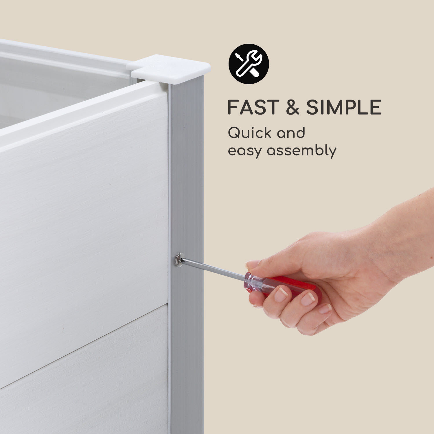 Vypestujte si vlastné: Teraz so záhradným záhonom Blumfelfd Nova Grow Vysaďte ovocie, zeleninu, bylinky a kvety v pohodlnej pracovnej výške a premeňte záhrady alebo terasy na živé oázy sviežosti.Stabilný záhradný záhon je vyrobený z WPC kompozitu (Wood Plastic Composite) odolného voči poveternostným vplyvom a vďaka ochrane proti UV žiareniu, korózii a mrazu je ideálny na trvalé použitie v exteriéri. Vďaka svojmu prírodnému drevenému vzhľadu sa konštrukcia ideálne hodí do každej záhrady a terasy a pôsobivo zvýrazní svoje okolie vďaka farebnému prevedeniu v jednoduchej bielej farbe. Pri výške 91 cm má Nova Grow mimoriadne pohodlnú výšku, ktorá pri sadení a zbere šetrí chrbticu, pretože sa nemusíte toľko ohýbať. Okrasný vyvýšený záhon sa dá zostaviť za krátky čas a vďaka hliníkovým výstuhám na všetkých 4 rohových častiach sľubuje mimoriadne vysokú robustnosť a stabilitu.Čas na sviežu zeleň a osviežujúce farby: Vysaďte si vlastný okrasný vyvýšený záhon s Blumfelfd Nova Grow a vychutnajte si domáce bylinky a kvety, ako aj chutné ovocie a zeleninu.Upozorňujeme, že vyvýšený záhon sa dodáva bez základovej dosky.