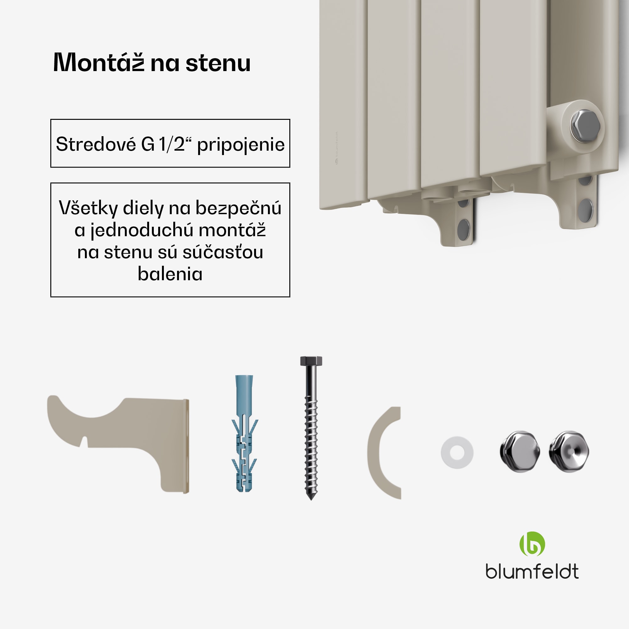 Radiátor Blumfeldt Ontario – príjemné teplo pre váš domov s moderným dizajnom.Blumfeldt Ontario sa dá jednoducho integrovať do existujúceho systému teplej vody alebo diaľkového vykurovania a funguje aj s elektrickými vykurovacími tyčami alebo elektronickými termostatmi. Poskytuje spoľahlivý a rovnomerný zdroj tepla v kúpeľni.Pripojenie rúrok na boku alebo v strede je veľmi jednoduché. Potrebné nástenné konzoly sú tiež priamo súčasťou balenia. Robustný systém kovových rúrok vedie a optimálne rozvádza teplo v miestnosti.Vďaka špeciálnemu úzkemu dizajnu sa perfektne hodí do všetkých miestností s obmedzeným priestorom.Príjemné teplo ihneď po sprchovaní alebo kúpaní s radiátorom Blumfeldt Ontario – štýlový zážitok.