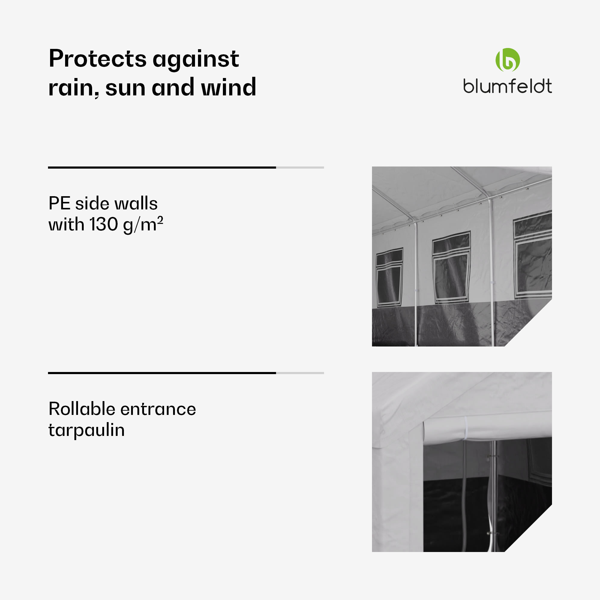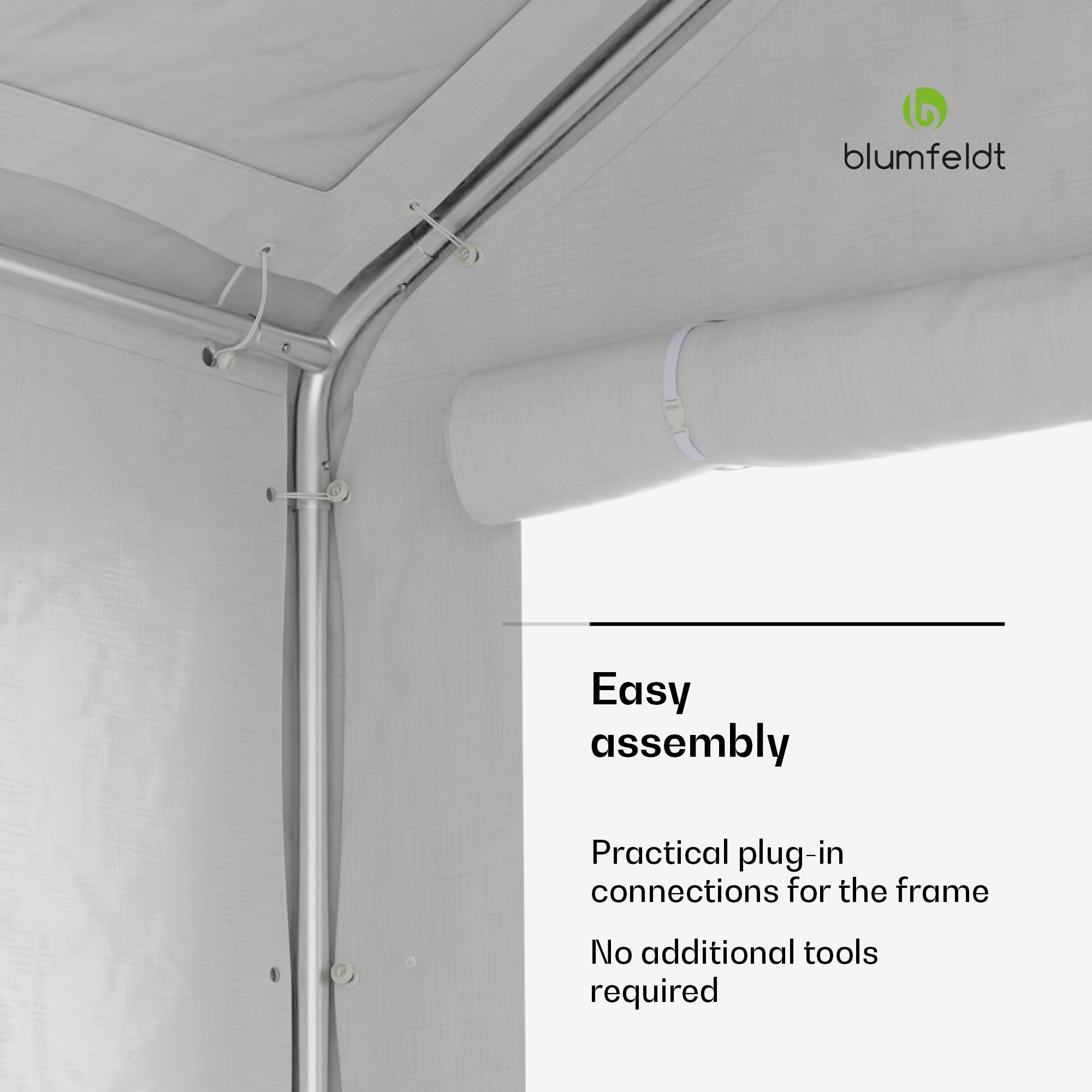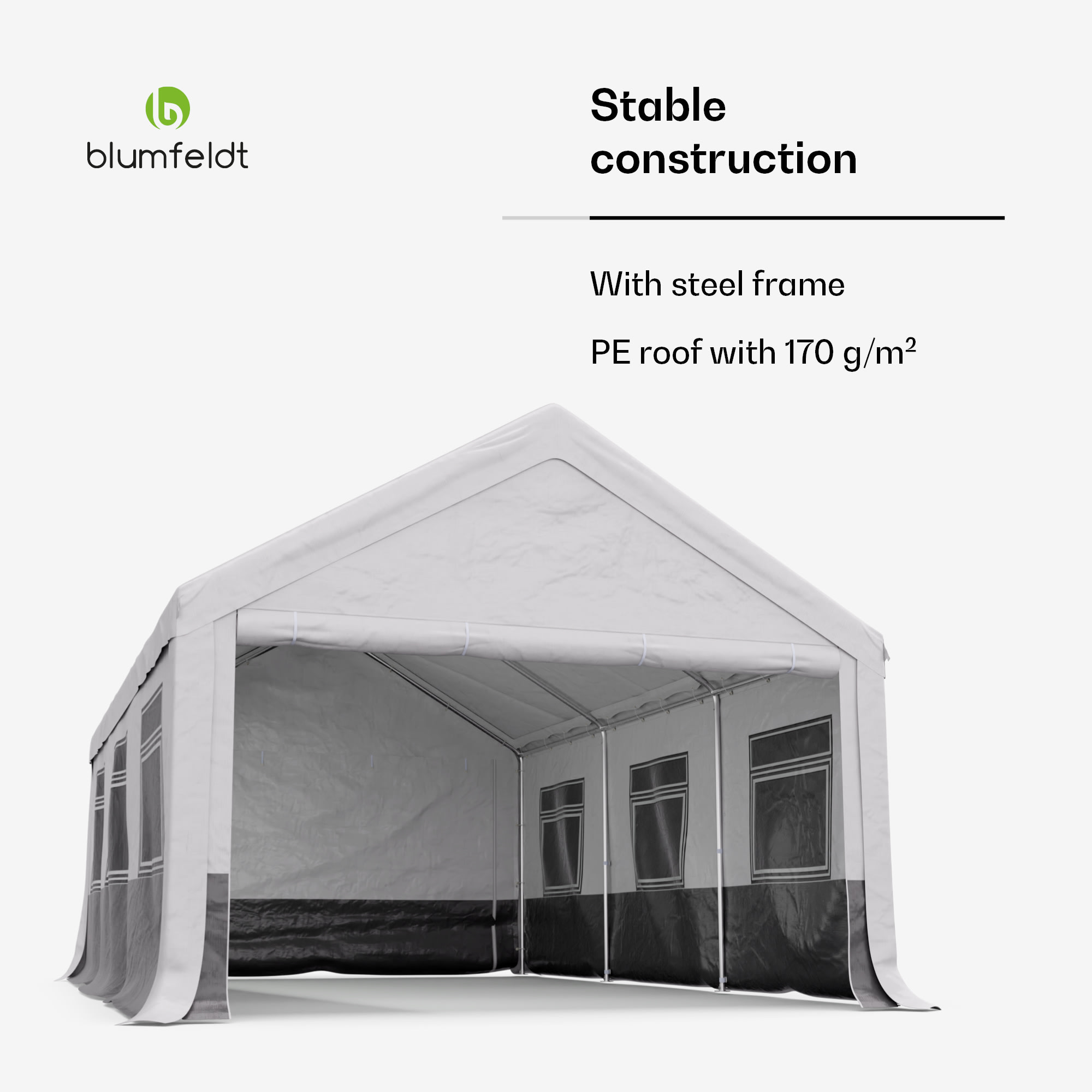 Záhradný stan na všetky príležitosti: Stan Blumfeldt Party Haven je nevyhnutnou súčasťou vonkajších narodenín, rodinných grilovačiek alebo večerných koktailov s priateľmi. Robustný párty stan od Blumfeldt je vyrobený z kvalitného materiálu a vďaka pevnej oceľovej konštrukcii odolá nárazom vetra a nepriaznivému počasiu. Strecha z PE s gramážou 170 g/m² a bočné steny z PE s gramážou 130 g/m² sú vyrobené z tkaniny odolnej voči poveternostným vplyvom. Záhradný stan poskytuje tieň počas horúcich slnečných dní, ochranu pred ľahkým dažďom a dokonca aj bariéru proti otravnému hmyzu. Ideálne na vonkajšie aktivity a párty bez ohľadu na počasie.Záhradný stan od spoločnosti Blumfeldt sa mimoriadne ľahko stavia. Základný rám možno zostaviť v niekoľkých jednoduchých krokoch pomocou jednoduchých zásuvných spojov. Strecha a bočné plachty sa potom pripevnia k oceľovému rámu. Všetky potrebné diely sú už súčasťou balenia, takže miesto na oslavu možno zriadiť aj spontánne v záhrade. Stan Party Haven od Blumfeldt je nielen mimoriadne praktický, ale aj skutočne pútavý. Či už na oslavu, alebo ako trvalá súčasť vonkajšieho priestoru. Atraktívny dizajn vnesie do vašej záhrady nádych elegancie. Základný rám tmavej farby je mimoriadne praktický. Mierne znečistenie preto nie je hneď viditeľné a párty stan vyzerá vždy čisto.
