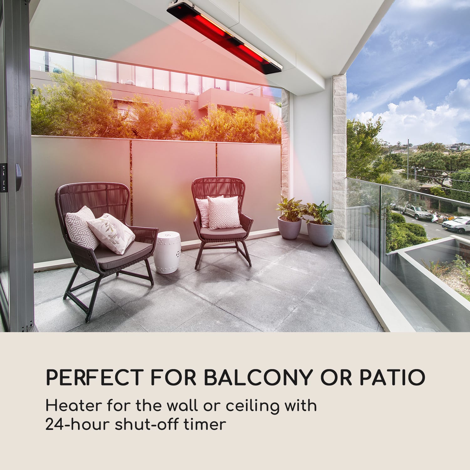 S ohrievačom Blumfeldt Phantom bude sedenie na terase, v záhrade alebo na balkóne príjemne teplé. Efektívne a cielene prináša jemné infračervené teplo do chladných dní aj nocí! Keď klesnú teploty, jednoducho zapnete jediným stlačením tlačidla ohrievač Phantom a hneď sa šíri príjemné teplo. Karbónové výhrevné teleso s tromi nastaviteľnými úrovňami výkonu ohrieva mimoriadne rýchlo a efektívne – podľa potreby s 800, 1600 alebo 2400 W. Systém IR ComfortHeat zapôsobí svojím infračerveným karbónovým vykurovacím telesom s extrémne dlhou životnosťou. Pomocou infračervenej technológie je teplo odovzdávané cielene na ľudí v blízkosti a nie do vzduchu v okolitom prostredí. Pomocou praktického diaľkového ovládača sa dá stlačením tlačidla zmeniť stupeň tepla alebo sa dá po hodinách naprogramovať časovač vypnutia až na 24 hodín. Ohrievač môžete, samozrejme, zapnúť alebo vypnúť aj priamo na zariadení, displej poskytuje informácie o zvolenej úrovni vykurovania. Teraz si môžete plánovať pobyty na balkóne alebo terase bez starostí s teplotami: po prepnutí prepínača vytvára infračervený ohrievač Phantom príjemné, domáce teplo bez dlhej fázy zahrievania. Oslavujte neskoro do noci alebo strávte romantický večer na terase, až kým sa na oblohe objavia hviezdy. Vďaka ohrievaču Phantom od spoločnosti Blumfeldt Vám bude stále príjemne teplo.