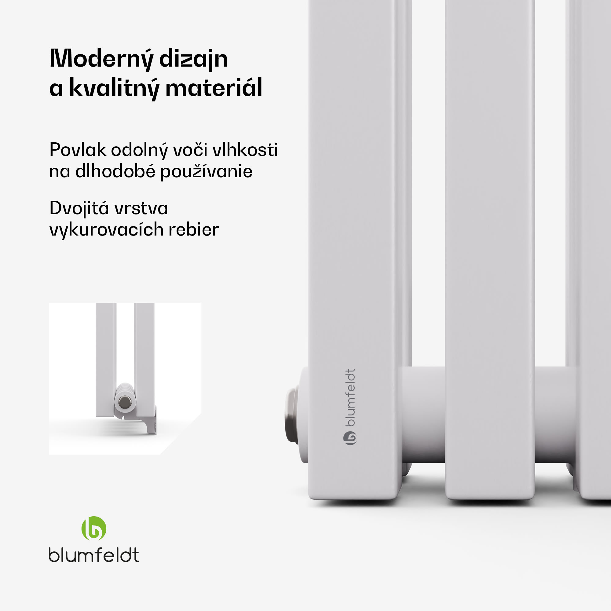 Blumfeldt Delgado radiátor kombinuje moderný dizajn s efektívnou vykurovacou technológiou. S výkonom 942 wattov a dvojvrstvovou štruktúrou poskytuje útulné teplo a perfektne sa hodí do kúpeľní, obývacích izieb alebo kancelárií. Vďaka svojim vertikálnym vykurovacím trubkám ponúka Blumfeldt Delgado trubkový radiátor optimálne rozloženie tepla, ktoré rýchlo a rovnomerne zahreje každú miestnosť. Stredové pripojenie umožňuje jednoduchú integráciu do systému teplej vody. Vyrobený z kvalitnej ocele s teplu odolným práškovým náterom, ohromuje svojou odolnosťou a ľahko udržiavateľnými povrchmi. Vďaka svojmu štíhlemu, priestorovo úspornému dizajnu je radiátor ideálny pre všestranné koncepcie miestností. Či už v obývacej izbe, kancelárii alebo kúpeľni – Delgado kombinuje funkčnosť s nadčasovým štýlom. Objednajte si Blumfeldt Delgado radiátor teraz a rýchlo zažite efektívne teplo v modernom dizajne!
