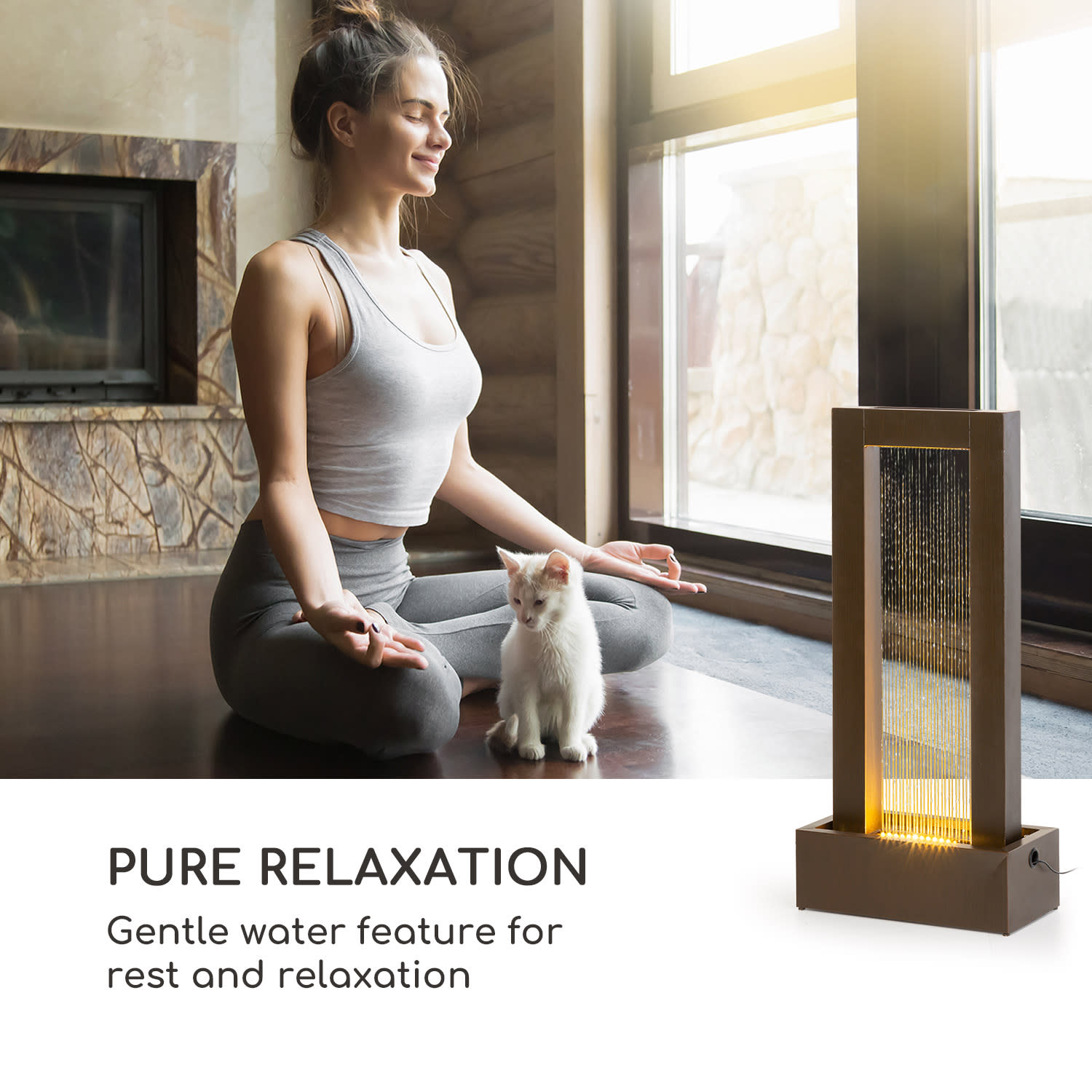 Mystický vodný svet fontány Blumfeldt Skyriver premieňa záhradu, terasu, obývaciu izbu alebo zimnú záhradu na rekreačné prostredie pre oči a uši – očarujúca kombinácia žblnkajúceho prúdu vody, čistej formy a žiarivých odrazov svetla.S jemným žblnkaním okrasnej fontány Blumfeldt Skyriver bude relaxovanie ešte krajšie. Z jej veľkej brány sa vylieva 20 cm široká kaskáda jemne žblnkajúcej vodnej hry do vodnej nádrže, vďaka ktorej sa postará fontána o meditatívnu relaxáciu. Fontána však vizuálne poteší nielen stálym prúdom vody: priamo v nádrži spôsobuje 20 cm široký LED pás, že voda žiari odrazmi teplého bieleho svetla. Kubisticky inšpirovaný fontánový oblúk z pozinkovaného kovu má bronzové prevedenie. Fontána Skyriver poteší myseľ opticky aj akusticky. Je nielen mimoriadne robustná a vďaka kovu odolná voči poveternostným vplyvom, ale je aj plne pozinkovaná: bez hrdze a poškodení sa dokonale začlení do rôznorodých prostredí. Aby sa vodná hra nikdy neunavila, je udržiavaná v nepretržitom obehu pomocou čerpadla s výkonom 12 W. Jemne šumiac odhaľuje maximálny meditačný účinok a osviežuje svoje okolie.Vďaka extrémne dlhému 10 m káblu môže byť fontána Blumfeldt Skyriver umiestnená skutočne ľubovoľne. Všetky časti sú odolné voči poveternostným vplyvom a môžu zostať v exteriéri dokonca aj v nepriaznivom počasí.Stredobod vo Vašej záhrade s krásnym tvarom a vodou: so záhradnou fontánou Blumfeldt Skyriver urobíte zo svojej záhrady alebo bytu mystické miesto odpočinku.