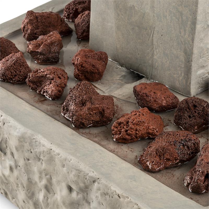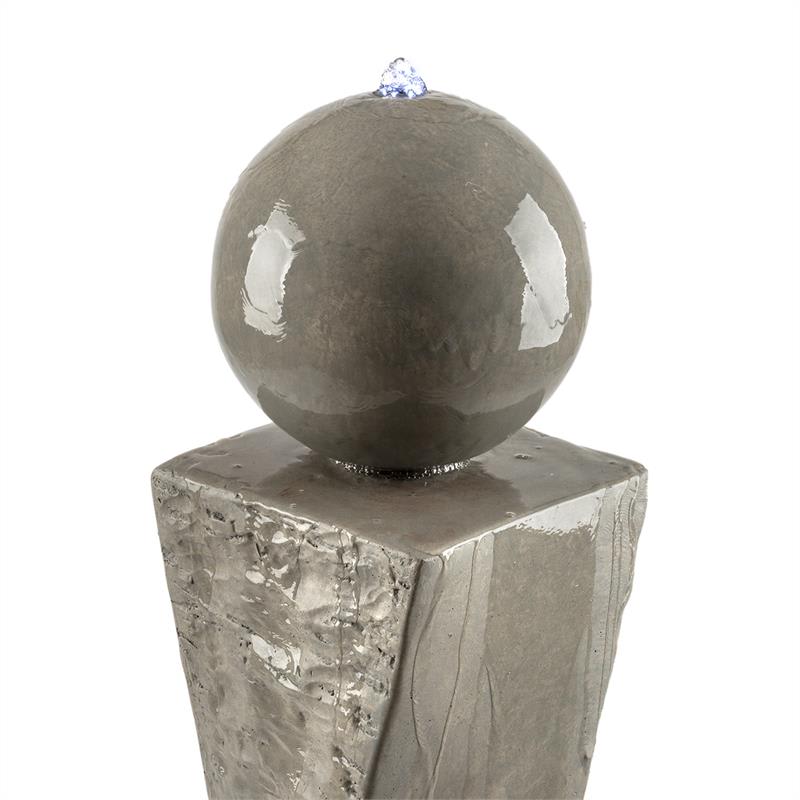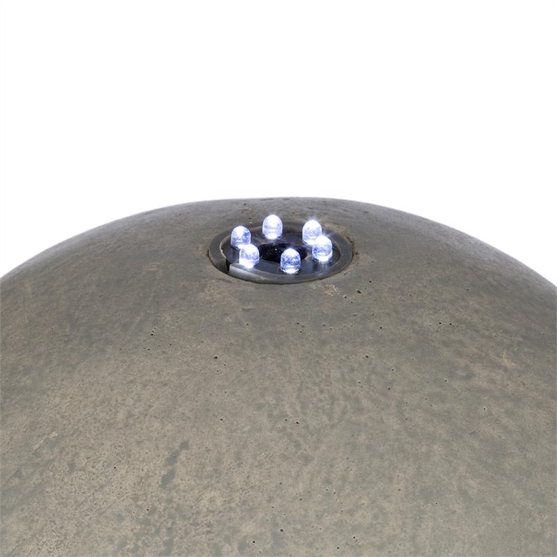 Impozantný stredobod záhrady: záhradná fontána Blumfeldt Trafalgar víťazne dominuje v záhrade a svojou hrou vody jej poskytuje osviežujúce aspekty.Záhradná fontána Blumfeldt Trafalgar z robustného sklolaminátového cementu s dizajnom liateho cementu prevýši iné záhradné dekorácie. So svojou výškou 1,50 m víťazne vytŕča spomedzi všetkých záhonov a stáva sa tak stredom záhrady. Z vyvýšenej guľovitej časti centrálneho stĺpa osviežujúco vyviera voda, ktorá prúdi cez zaoblené povrchy späť do nádrže. Malé, no výkonné čerpadlo sa postará o neustálu cirkuláciu, takže vodu netreba dopĺňať. V nádrži špeciálne priťahuje pozornosť 4,5 kg dodávaných ozdobných kameňov z červeného tufu (každý s priemerom približne 8 cm), ktoré je možné rozdeliť podľa vlastných preferencií. Malý LED veniec zabezpečuje nočné osvetlenie, ktorý rozžiari ako korunka vodu na guli. To však nie je zďaleka všetko. Elektrický systém je inštalovaný vo vnútri okrasnej fontány a nenarúša teda jej vzhľad. Pre vonkajšie použitie odolné voči poveternostným vplyvom je fontána certifikovaná podľa IP44.  5 metrov dlhý kábel umožňuje ľubovoľné umiestnenie v záhrade.Triumf záhradnej dekorácie: okrasná fontána Blumfeldt Trafalgar odvážne vystupuje zo záhradnej scenérie a poskytuje impozantný pohľad.