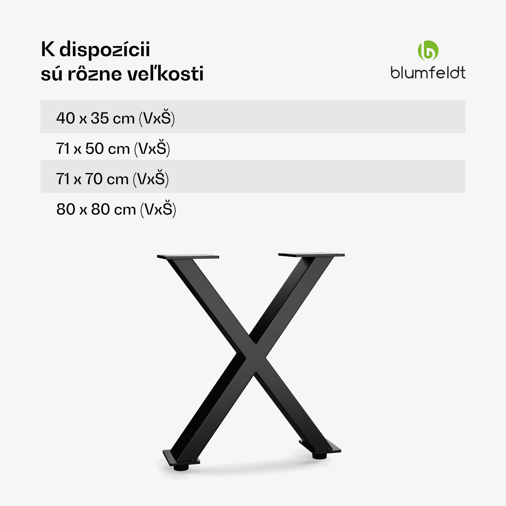 Nohy stola blumfeldt UrbanFodge X spájajú moderný dizajn s funkčnosťou a zaujmú svojou všestrannosťou. Nielen, že môžete vytvoriť základnú konštrukciu pre konferenčné stolíky, môžete tiež vytvoriť robustnú lavicu v chodbe ako svojpomocný projekt.Nohy stola od spoločnosti blumfeldt zaujmú vysokokvalitným spracovaním a matným povrchom, ktorý im dodáva sofistikovaný vzhľad. Robustné oceľové nohy stola v tvare písmena X zaisťujú vynikajúcu stabilitu a maximálna nosnosť 200 kg umožňuje všestranné použitie. Vďaka vysokému maximálnemu zaťaženiu možno nohy stola blumfeldt UrbanFodge X v prípade potreby ľahko použiť aj na konštrukciu lavice. Ak máte doma veľa hostí, môžete si tak ľahko vytvoriť ďalšie miesta na sedenie. Nohy stola s hmotnosťou len 8 kg sú skutočne ľahké a zaručujú, že hotový kus nábytku sa dá ľahko prenášať z miestnosti do miestnosti.Montáž je jednoduchá vďaka presným otvorom a robustným montážnym doskám, takže nohy stola od spoločnosti blumfeldt možno bez námahy premeniť na hotový kus nábytku.Objavte všestrannú funkčnosť stolových nôh blumfeldt UrbanFodge X a pustite sa do svojho ďalšieho nábytkárskeho projektu!