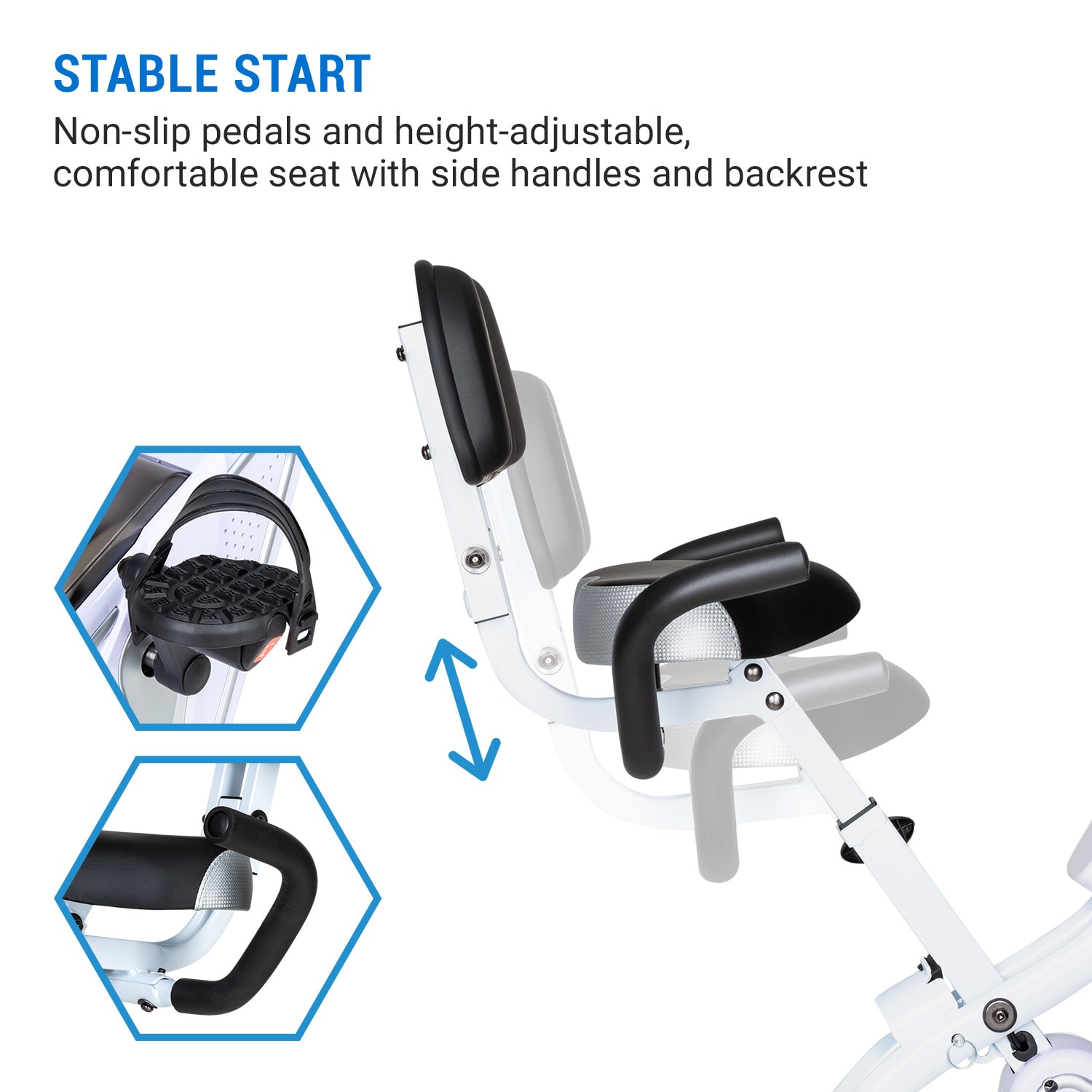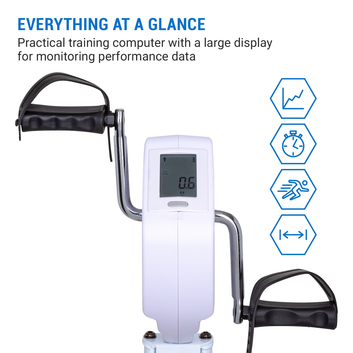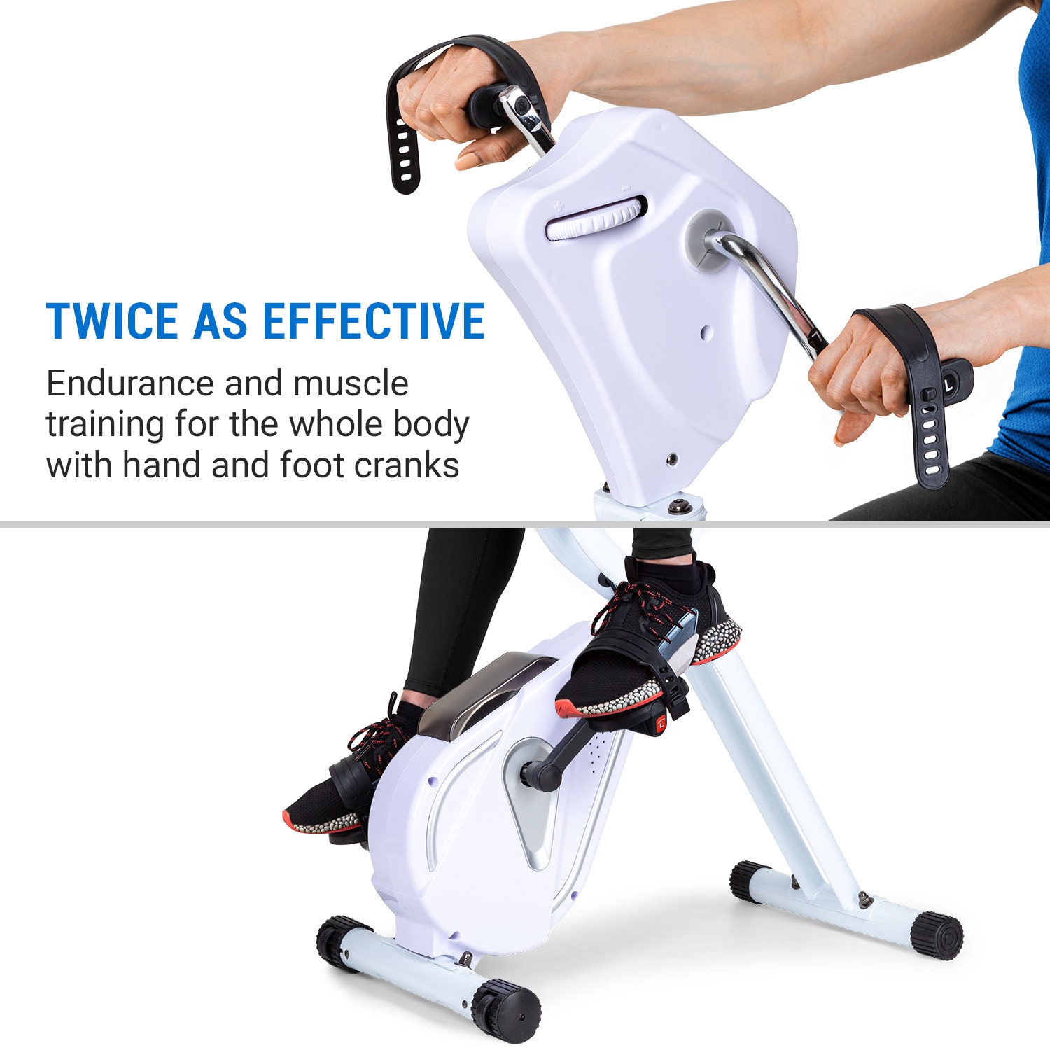 S domácim trenažérom Capital Sports Azura Full Body Comfort potrebujete na svoj kompletný tréning iba jedno zariadenie: môžete uvoľnene točiť rukami a dodatočne dostať do formy aj svoje paže a ramená. Pedálovaním rukami aj nohami naštartujete svaly a krvný obeh a spálite poriadne množstvo kalórií posediačky!Buďte fit iba s jedným zariadením! U Kardio bicykla Capital Sports Azura Full Body Comfort bola predná rukoväť nahradená handbikeom. To znamená, že čas v sedadle domáceho trenažéra môžete využiť dvojnásobne efektívne tým, že budete trénovať paže aj nohy súčasne. Vďaka hmotnosti zotrvačníka 7,5 kg a 8-stupňovo nastaviteľnému tréningovému odporu MagResist môžete systém Azura Full Body Comfort dokonale prispôsobiť vašej úrovni. Pohodlné rukoväte sedadla umožnia stabilné držanie po celú dobu, keď práve nedržíte ručnú kľuku. Protišmykové pedále a držadlá kľuky s nastaviteľnými sponami tiež pomáhajú pri optimálnom prenose sily na pedále a kľuku. Aby ste mali svoj tréningový pokrok vždy pred očami, v kľuke je zabudovaný tréningový počítač s veľkým a prehľadným displejom. Uvidíte na ňom vzdialenosť, čas, alebo spálené kalórie.Po tréningu sa domáci trenažér vďaka koncepcii SmartSpace Concept jednoducho zloží a priestorovo úsporne uskladní.Jeden stroj pre celé telo: domáci trenažér Capital Sports Azura Full Body Comfort je perfektnou kombináciou trenažéra paží aj nôh a poriadne rozhýbe svaly a krvný obeh.