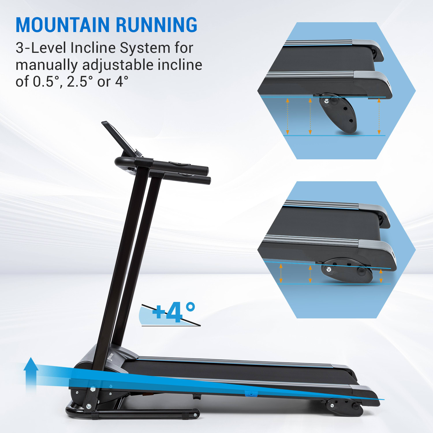 Premyslená technika pre ten najlepší bežecký tréning! Bežiaci pás Klarfit Pacemaker F60 sa s modernými technológiami a integrovanými funkciami postará o príjemný zážitok z domáceho tréningu bez ohľadu na čas a počasie. Priveďte svoje telo do švungu: s bežiacim pásom Klarfit Pacemaker F60 je to možné veľmi jednoducho v pohodlí domova. Jeho motor s výkonom 1.0 PS rozbehne bežecký pás až na rýchlosť 10 km/h, takže sa zapotia nielen začiatočníci ale aj experti. Motor je pritom vďaka LowNoise-FX Drive mimoriadne tichý, takže nič nestojí v ceste ani nočnému tréningu. Vďaka 3-Level Incline systému si môžete vybrať 0,5°, 2,5° alebo 4° sklon stúpania, aby ste si bežiaci pás prispôsobili vlastným výkonnostným cieľom. Inovatívny AutoLubrication System Vám nielenže ušetrí údržbu pásu vďaka samopremazávaciemu mechanizmu, ale postará sa aj o dodatočnú absorpciu nášľapu podobnú podrážkam vysokokvalitnej bežeckej obuvi. Špeciálne vyvinutý, viacvrstvový bežecký pás sa dodatočne postará o tréning šetrný k vašim kĺbom a o dlhú životnosť zariadenia. Integrovaný tréningový počítač s LCD displejom a senzorom pulzu pomáha sledovať údaje o výkone, akými sú prejdené kilometre, spálené kalórie, rýchlosť a srdcová frekvencia, a vďaka 12 programom poskytuje rozmanitú úroveň tréningu. Akoby to nestačilo, na ovládacej časti sa nachádza držiak na tablet, ktorý sa počas tréningu postará o zábavu s videami a hudbou. Cez bluetooth je možné poslať všetky výkonnostné údaje priamo na tablet, iPad alebo smartfón a vyhodnotiť ich v aplikácii iFitShow. Okrem toho umožňuje aj kompletné ovládanie bežiaceho pásu cez túto aplikáciu. Po tréningu, znamená pred tréningom, bežiaci pás Klarfit Pacemaker F60 môžete pomocou hydraulického systému automaticky sklopiť i rozložiť a vďaka zabudovaným kolieskam jednoducho a rýchlo premiestniť.