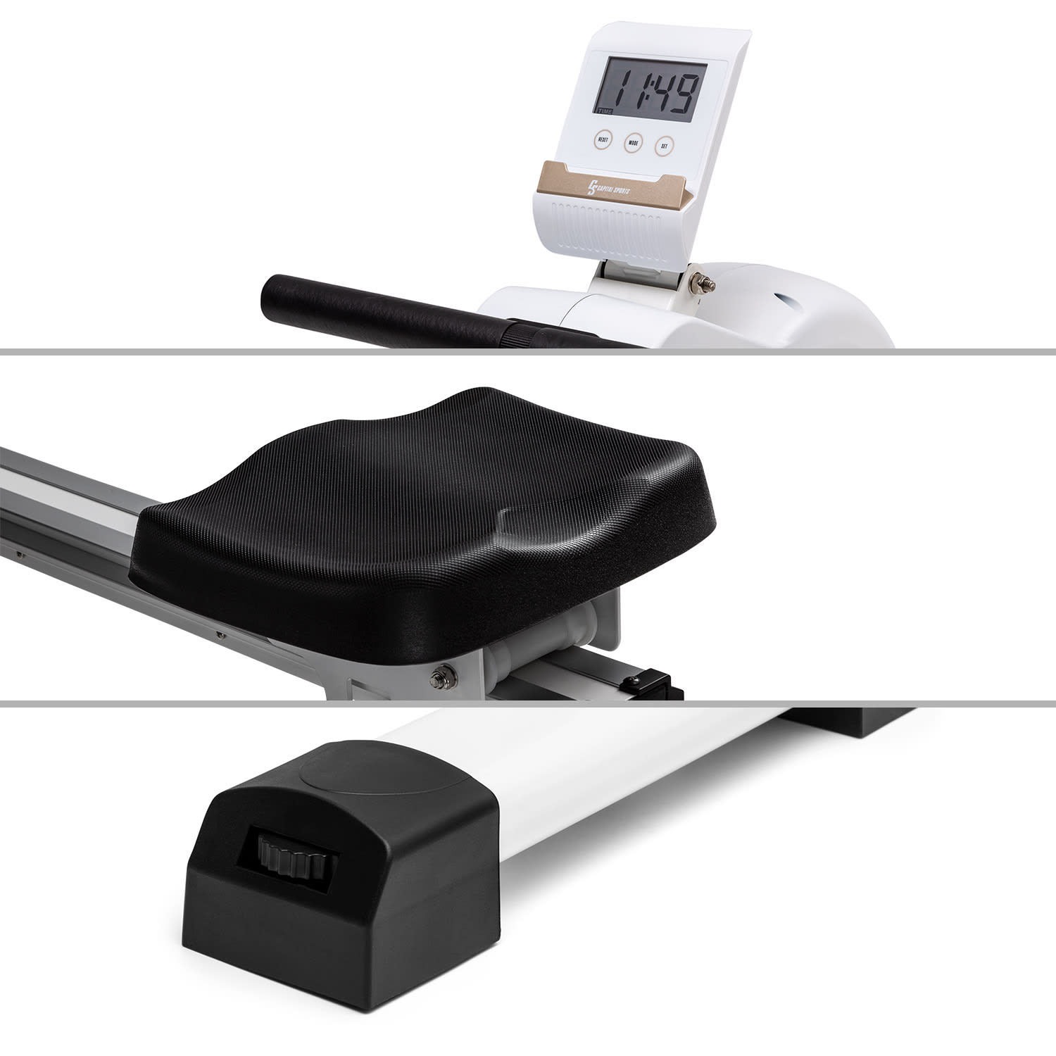 Tréning celého tela Veslovací trenažér Stream M1 od CAPITAL SPORTS umožňuje vysoko efektívny a na kĺby šetrný tréning celého tela pre športovcov do výšky 200 cm a hmotnosťou 150 kg. Takto budete od teraz trénovať vašu kondíciu a svaly!Veslovacia lavica Stream M1 od CAPITAL SPORTS vám sľubuje jedinečný zážitok z domáceho cvičenia. Srdcom vyváženého a kĺby šetriaceho tréningu je kvalitný, precízny hliníkový zotrvačník, ktorý pomocou nášho oceneného systému magnetického odporu MagResist odporuje vášmu veslovaniu vďaka 8 stupňom magnetického odporu. Vďaka hladkému chodu 105 cm dlhej hliníkovej posuvnej lišty je tréning takmer bezhlučný a bezproblémový a možný takmer v ktorúkoľvek dennú alebo nočnú hodinu. Na sledovanie vášho tréningu má veslovací trenažér Stream M1 od CAPITAL SPORTS k dispozícii mini počítač s LCD displejom, na ktorom nielenže môžete sledovať pádlovanie, prejdenú vzdialenosť alebo spálené kalórie. Na príjem údajov z impulzného pásma je k dispozícii integrovaný prijímač. Displej má aj držiak na tablet, takže si počas veslovania môžete vychutnať obľúbené relácie alebo hudbu. Opierky nôh so suchými zipsami zaisťujú bezpečné držanie. Po tréningu sa dá veslovací trenažér jednoducho a priestorovo úsporne uskladniť: Pomocou integrovaných podlahových koliesok ho premiestnite podľa potreby a posuvnú lištu nastavte vertikálne.Nie je to stroj ako každý iný: veslovací trenažér Stream M1 od CAPITAL SPORTS spája tichý, prirodzený a kĺby šetriaci tréning s kvalitným spracovaním a štýlovým dizajnom.