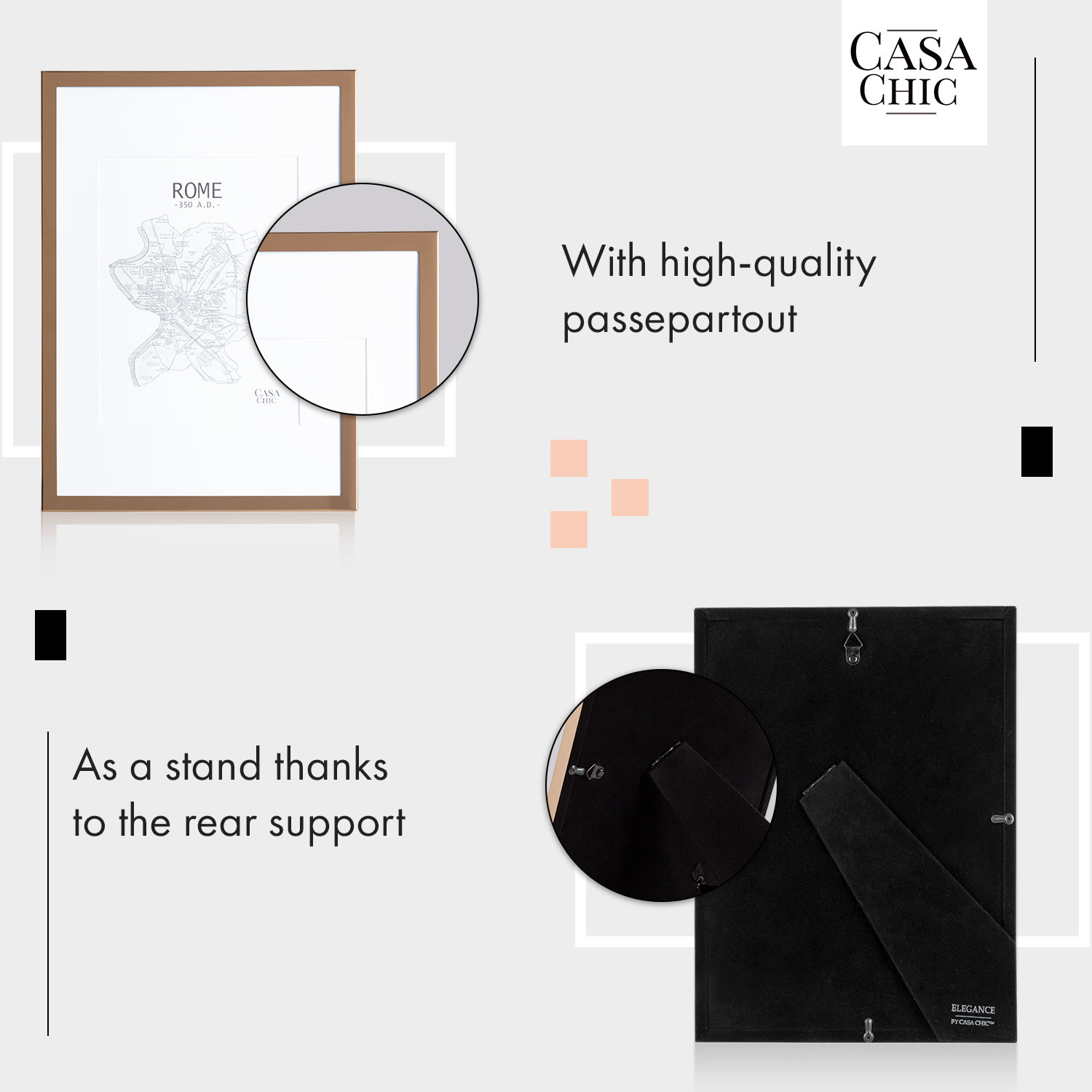 Casa Chic Berwick, rám na obrázky, obdĺžnikový, fotky DIN A4, pasparta, sklo –Kúpiť