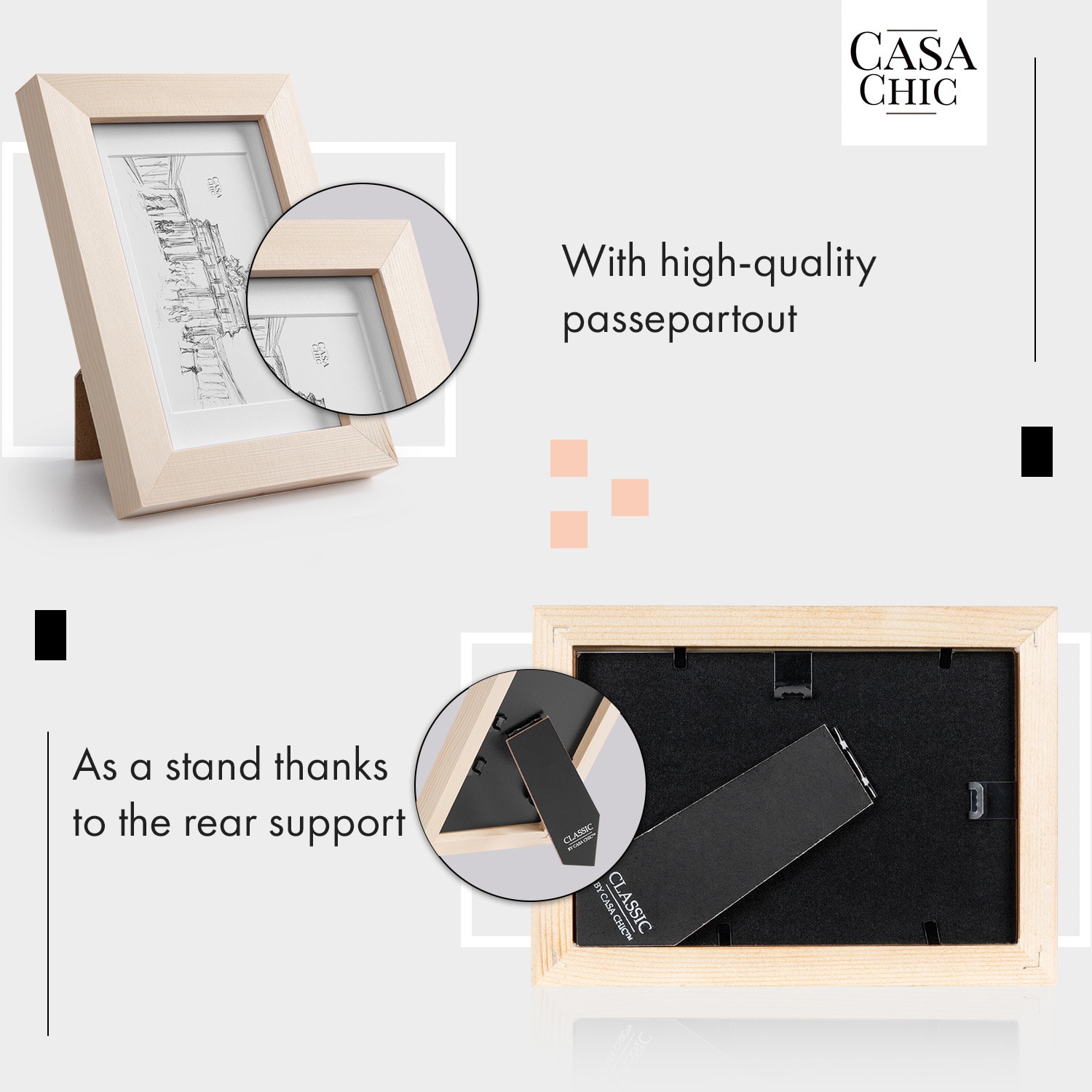 Casa Chic Edinburgh, rám na obrázky, obdĺžnikový, fotky 10 x 15 cm, pasparta, pravé drevo –Kúpiť