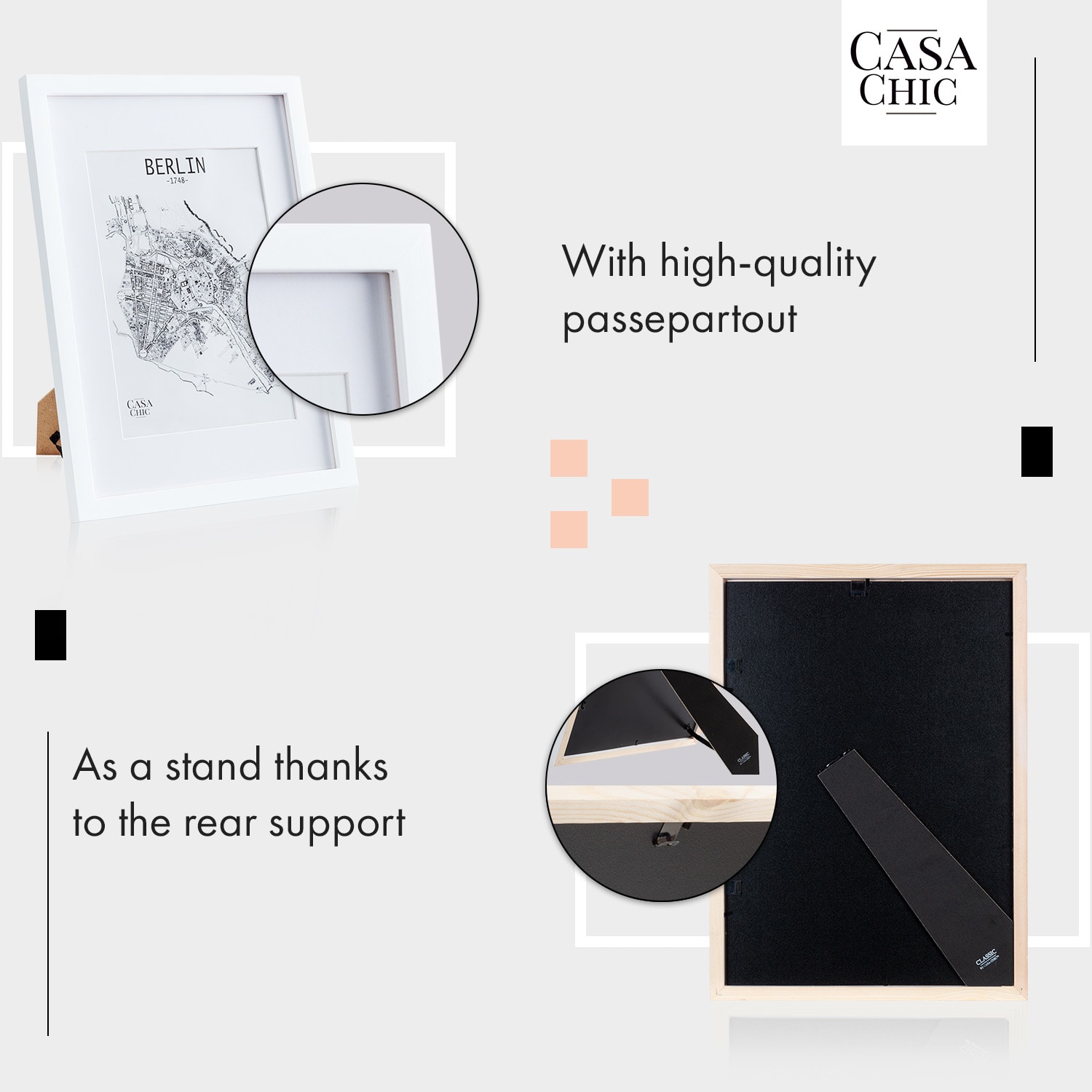 Casa Chic Everton, rám na obrázky, obdĺžnikový, DIN A3 fotky 41 x 28,7 cm, pasparta, akrylové sklo –Kúpiť