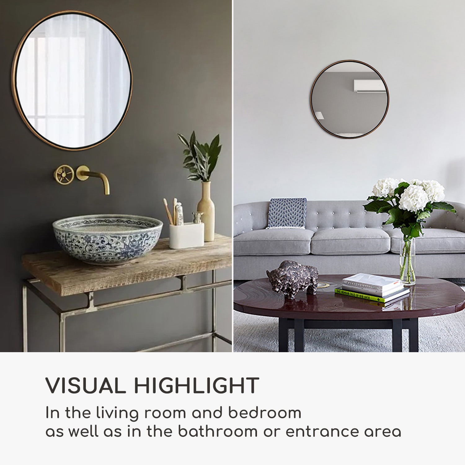 Nástenné zrkadlo Fournier od Casa Chic by blumfeldt s elegantným kovovým rámom obohatí každú vašu miestnosť. Ako dekoratívny prvok zažiari v obývacej izbe, vstupnej hale, či v spálni alebo kúpeľni. Rám je pozinkovaný a práškovo lakovaný, takže ho možno bez obáv zavesiť aj do vlhkých priestorov. Jeho okrúhly, nadčasový dizajn pripevnený na stene vytvára skutočný vizuálny pútač. Neokázalé, jednoduché a elegantné: nástenné zrkadlo Fournier od Casa Chic by blumfeldt.