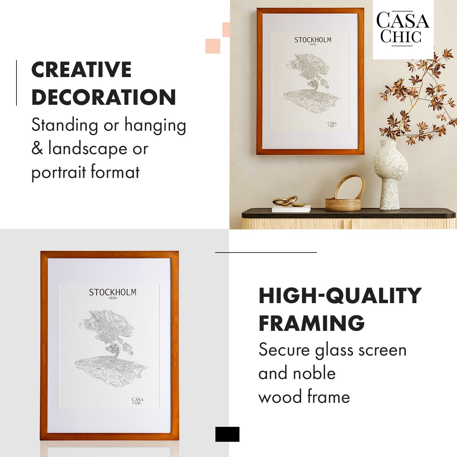 Vystavte pútavo vaše obľúbené fotky a obrazy s rámami na obrazy od Casa Chic by blumfeldt. Vysokokvalitné rámy z pravého dreva svojou jednoduchou eleganciou skrášlia steny vašej izby. Vďaka priloženej pasparte si zvolíte vhodný výrez pre obraz na šírku alebo na výšku. Za plexisklom, odolným voči rozbitiu, budú vaše umelecké diela dokonale chránené pred prachom a nečistotami. S fotorámikmi Kenton bude každá fotografia pastvou pre oči.