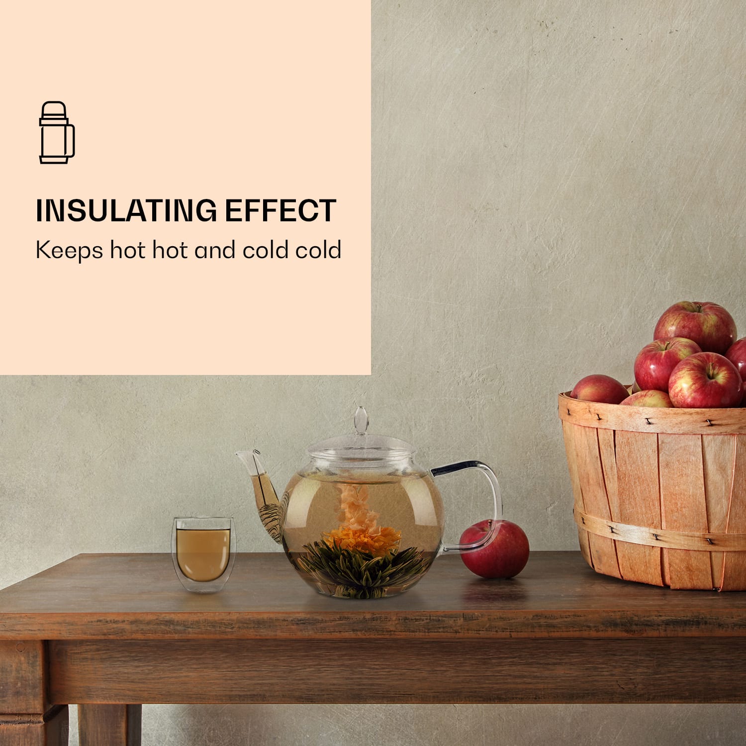 Oblé sklárske umenie: Vychutnanie si čaju z exkluzívneho pohára Ice od Feelino by Klarstein je prekrásnym prírodným divadlom, keď sa v baňatom pohári rozvinie prirodzená farba čaju. Pohľad je dychberúci, pretože váš nápoj akoby sa v baňatom pohári zázračne vznášal. Tento dekoratívny vzhľad je dosiahnutý vďaka výrobe z dvojstenného borosilikátového skla.Popritom zažijete s čajovým pohárom Ice od Feelino by Klarstein aj ideálny komfort pri pití čaju. Dvojitá vrstva skla mení uzavretý vzduch na izolačnú vrstvu, takže horúce ostane dlhšie horúcim a studené studeným. Pohár na čaj Ice je ručne fúkaný, s jedinečnou, veľmi odolnou kvalitou, vďaka ktorej je každý pohár unikátny. Vzhľad s vysokým leskom a harmonický zaoblený dizajn pôsobia exkluzívne – pohár je veľmi ľahký, odolný proti poškriabaniu a vhodné do umývačky riaduČarovné chvíle s plávajúcim čajom: V fúkanom pohári na čaj Ice od Feelino by Klarstein sa luhovanie čaju stáva farebným pôžitkom a navodzuje dojem, že sa v pohári vznáša.