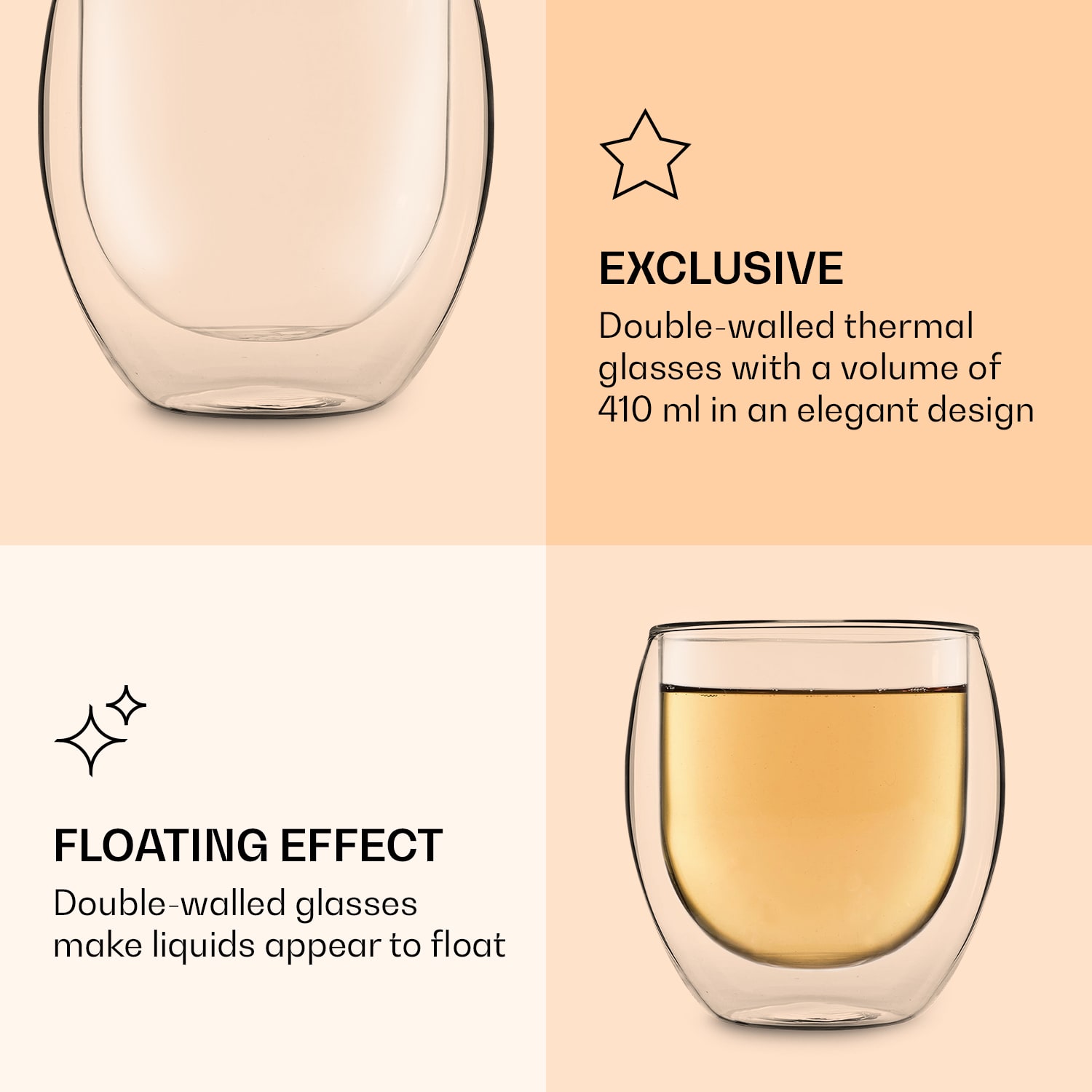 Feelino Jumbo pohár, Dvojstenný, Vysoko kvalitné borosilikátové sklo, 2 x 410 ml, Jedinečný