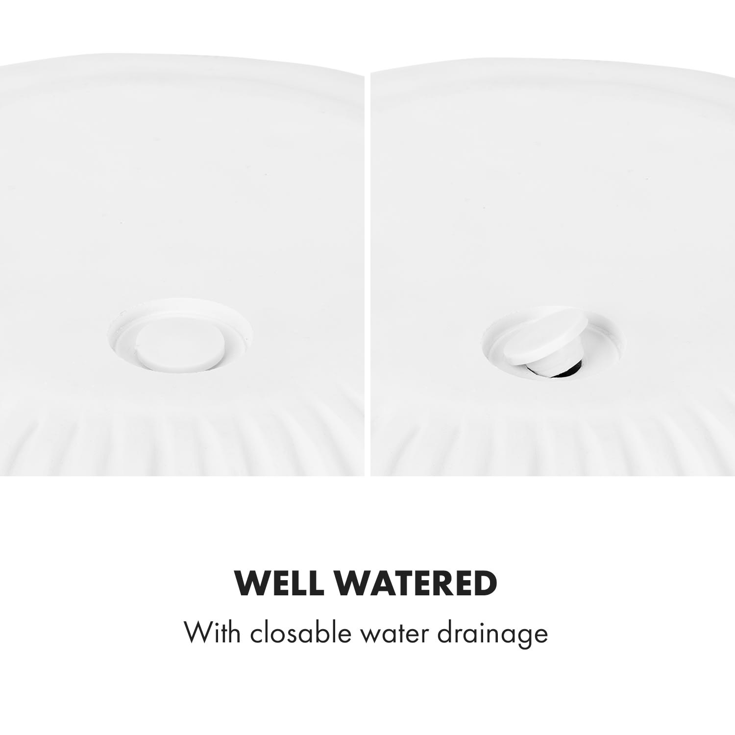V kvetináči Fox & Fern by Blumfeldt Hasselt z polystonu nájdu vaše rastliny nový, štýlový domov. Polyston je kombináciou kameňa, cementu a sklolaminátu, ktorá je obzvlášť robustná a tvrdá, no je mnohokrát ľahšia ako prírodný kameň. Je tiež veľmi šetrný k rastlinám a umožní vám zasadiť vašich zelených priateľov priamo do kvetináča Hasselt. Hasselt tiež zaisťuje príjemnú vlhkosť, pretože má na spodnej strane drenážny otvor. Môžete to otvárať a zatvárať pomocou príslušnej zátky. Takto vybavené sa vaše rastlinky – či už v interiéri alebo exteriéri – cítia úplne ako doma a skvele sa im darí. Štruktúra čiar vytvára vzor s 3D vzhľadom, ktorý upúta každého pozornosť.
