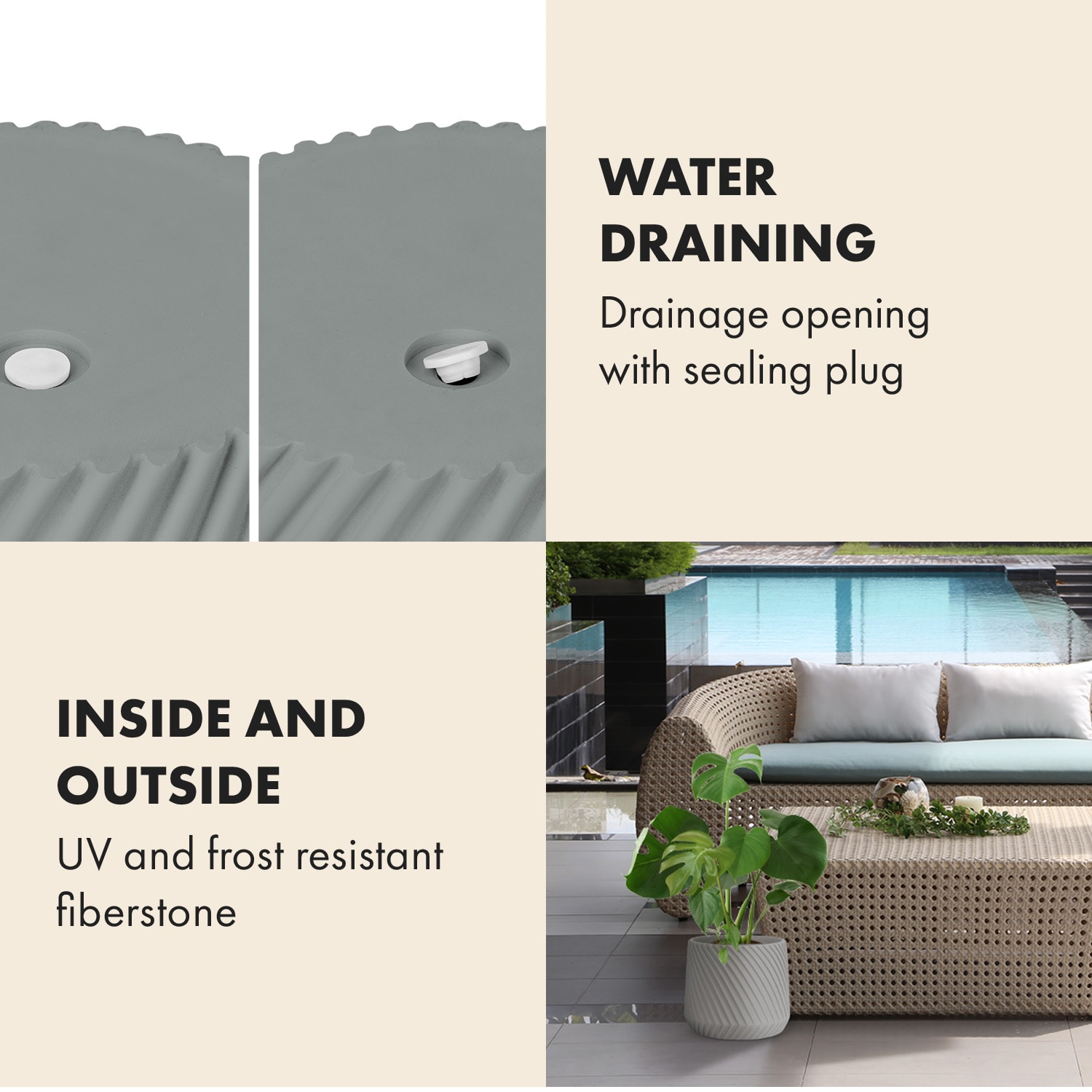 Dopraj svojim rastlinám nový domov: v elegantnom kvetináči Fox & Fern by blumfeldt Heusden z robustného materiálu Polystone sa bude tvoja rastlinka cítiť dobre všade naokolo a bude nádherne prosperovať. Polystone je kombinácia kameňa, cementu a sklolaminátu, ktorá je mimoriadne robustná a tvrdá, ale pritom je mnohonásobne ľahšia ako prírodný kameň. Okrem toho je veľmi priateľský k rastlinám a umožňuje ti zasadiť kvety, bylinky, kaktusy alebo izbové palmy priamo do kvetináča Heusden. S kvetináčom Heusden sa zabezpečí aj príjemná a správna vlhkosť, pretože na spodnej strane má otvor na odtok vody. Pomocou príslušnej zátky ho môžeš ľubovoľne otvárať a zatvárať.Vo vnútri alebo vonku – vďaka tomuto výnimočnému kvetináču budú tvoje rastliny a kvety nádherne prezentované a ideálne zavlažované. Asymetricky plynúce štruktúry čiar vytvárajú geometrický vzor v 3D vzhľade, ​​ktorý priťahuje pozornosť všetkých pohľadov. Tvar hrnca je smerom hore kónický.Ručne vyrobený kvetináč Fox & Fern by blumfeldt Heusden prezentuje špeciálnym spôsobom tvoje rastliny a tvojmu domovu dodá moderný nádych.