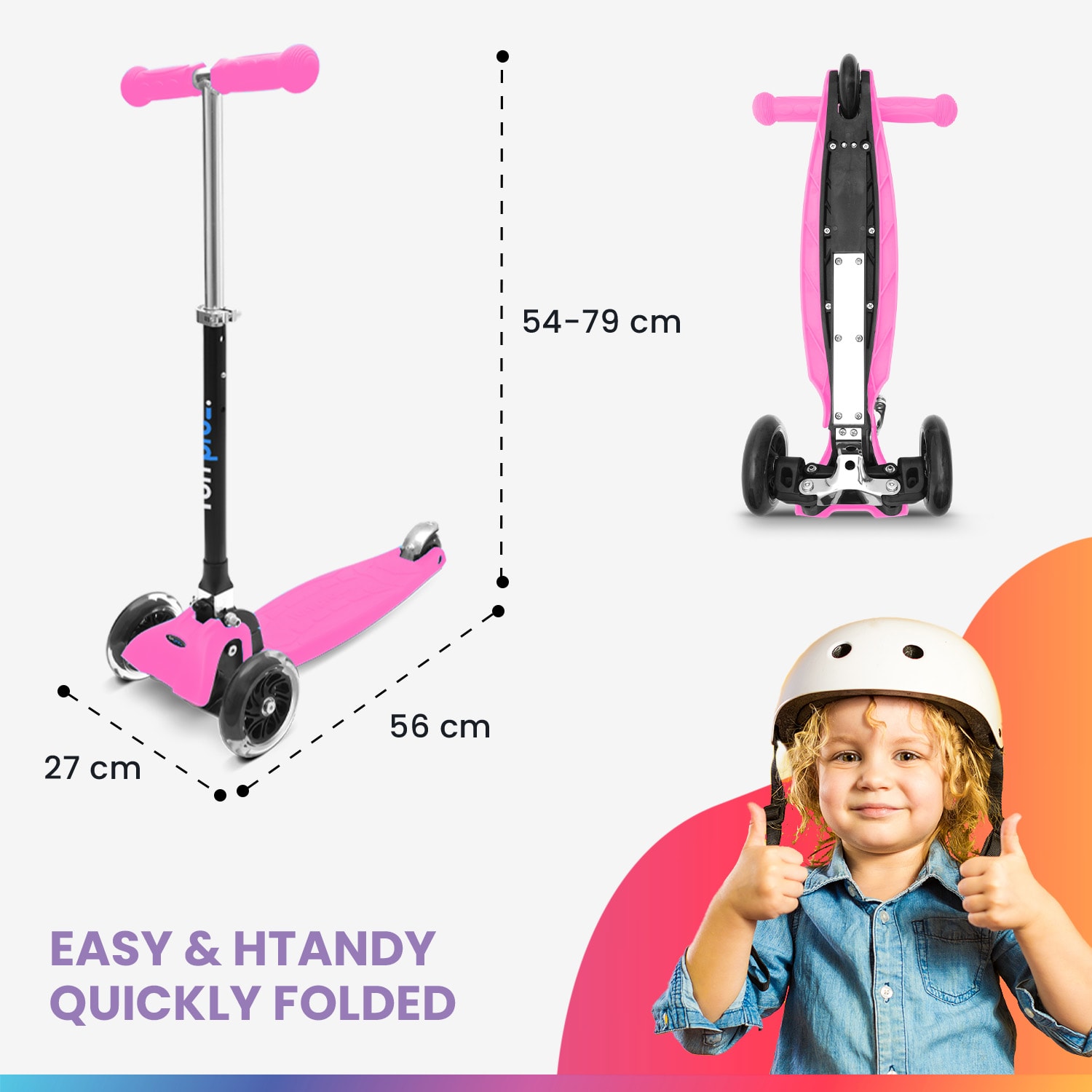 Kolobežka fun pro ONE ponúka veľa zábavy pre deti vo veku 3-6 rokov vďaka stabilnej prednej náprave s dvoma kolesami. Vďaka príjemnému gravitačnému riadeniu sa detská kolobežka riadi celkom pohodlne prenášaním hmotnosti tela. Tento princíp riadenia je založený na cyklistike a precvičuje sa tak rovnováha. Ďalšou zaujímavosťou tejto štýlovej kolobežky sú jasne svietiace LED kolesá, ktoré vďaka dynamu nevyžadujú výmenu batérie. Bezpečnosť zaisťujú kovové výstuhy na podvozku a spoľahlivá trecia brzda na zadnom kolese. Vďaka skladaciemu a výškovo nastaviteľnému riadidlu sa dá kolobežka tiež ľahko zložiť a uložiť.