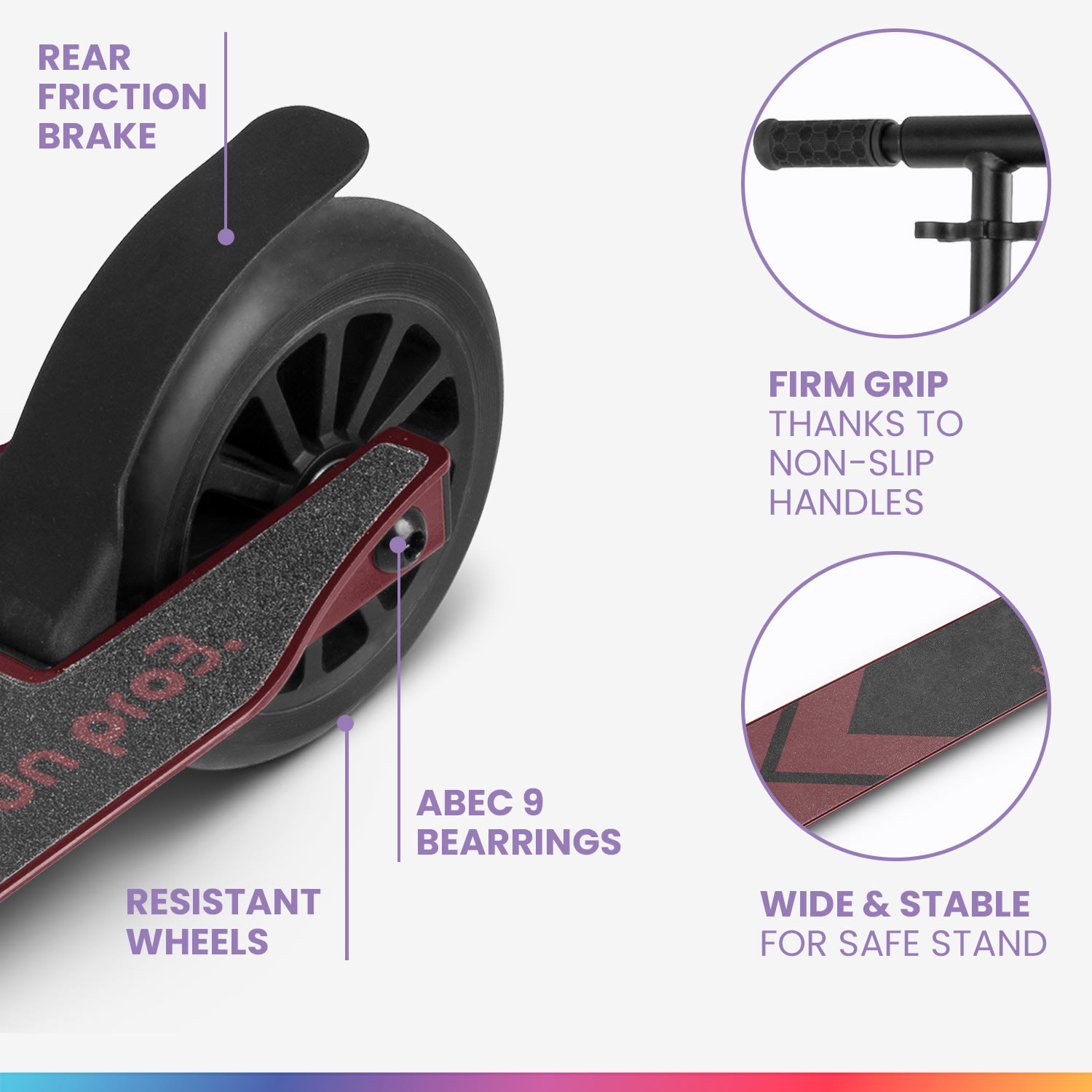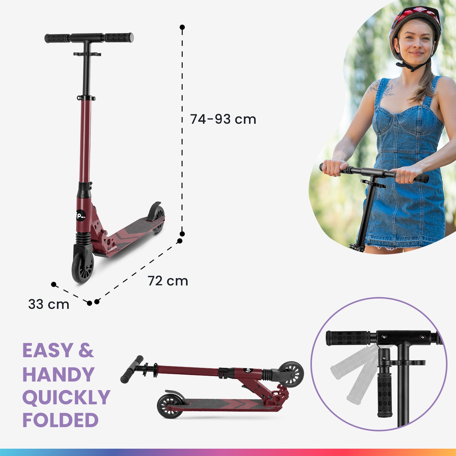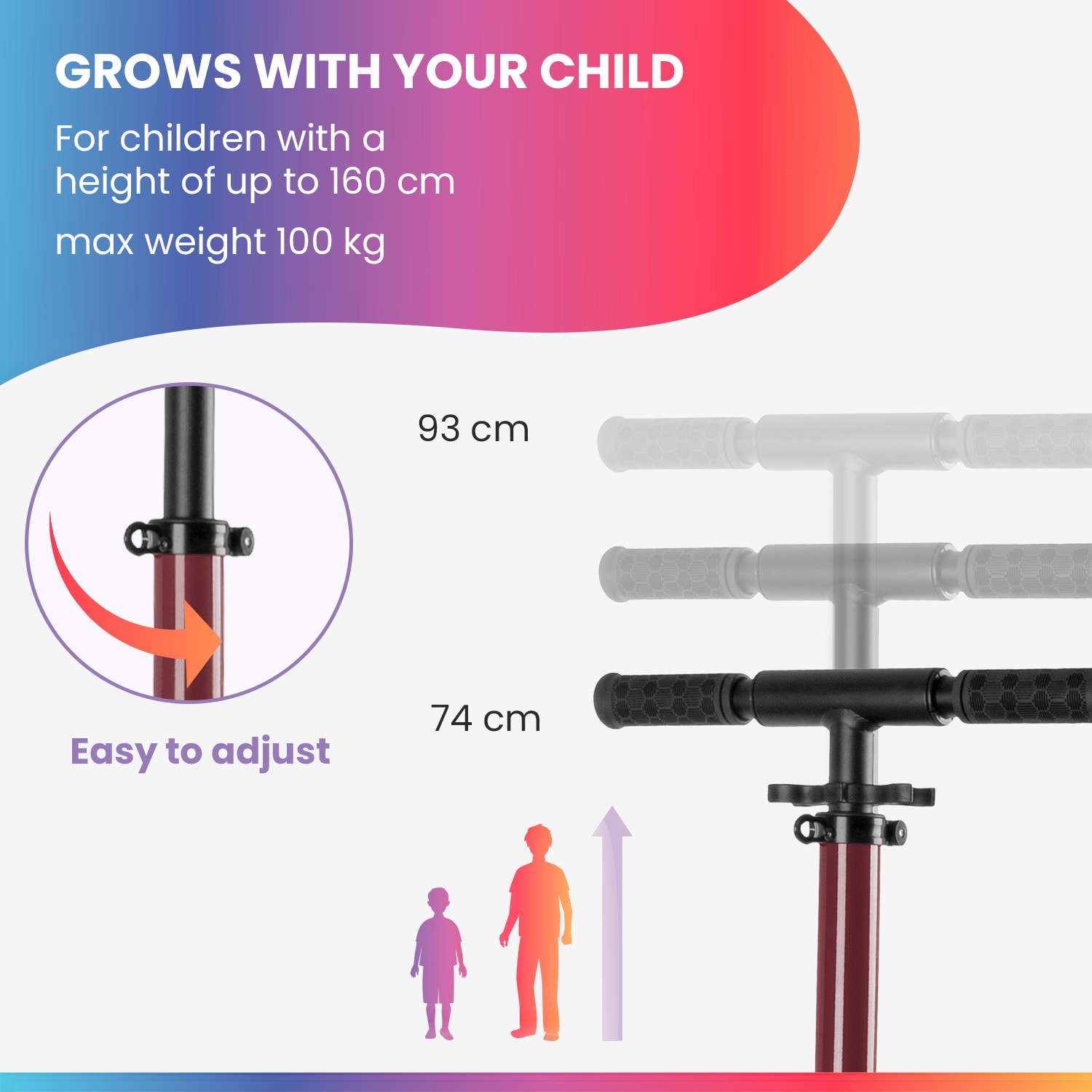 Zábava na kolobežke pre veľké deti! NaÅ¡a fun pro THREE detská kolobežka je vhodná pre vÅ¡etky deti a mládež vo veku 6 – 18 rokov, ktorà uprednostňujú jazdu na dvojkolesovej kolobežke. Kolobežka unesie až 100 kg a má plynulo nastaviteľné riadidlá od 74 do 93 cm: ideálne pre výšku od 110 do 160 cm. Riadidlá sa dajú ľahko zložiÅ¥ a dokonca aj konce riadidiel sa dajú pohodlne zložiÅ¥ dovnútra. Oba mechanizmy sú optimalizované, sedia veľmi Äisto a poÄas jazdy nedrnÄia. Kolobežka je teda naozaj vhodná na použitie vo verejnej doprave a zaberá málo miesta. Prepravu uľahÄuje aj popruh na prenášanie. Kolesá z PU s priemerom 120 mm a guľôÄkovými ložiskami ABEC 9 ponúkajú veľký pohon a zároveň sú obratné a ľahké. Tak ako vÅ¡etky naÅ¡e kolobežky, aj kolobežka fun pro THREE má treciu brzdu na zadnom kolese, ktorá zaisÅ¥uje potrebnú bezpeÄnosÅ¥. Rozkladacà stojan uľahÄuje parkovanie a chráni riadidlá pred odreninami.