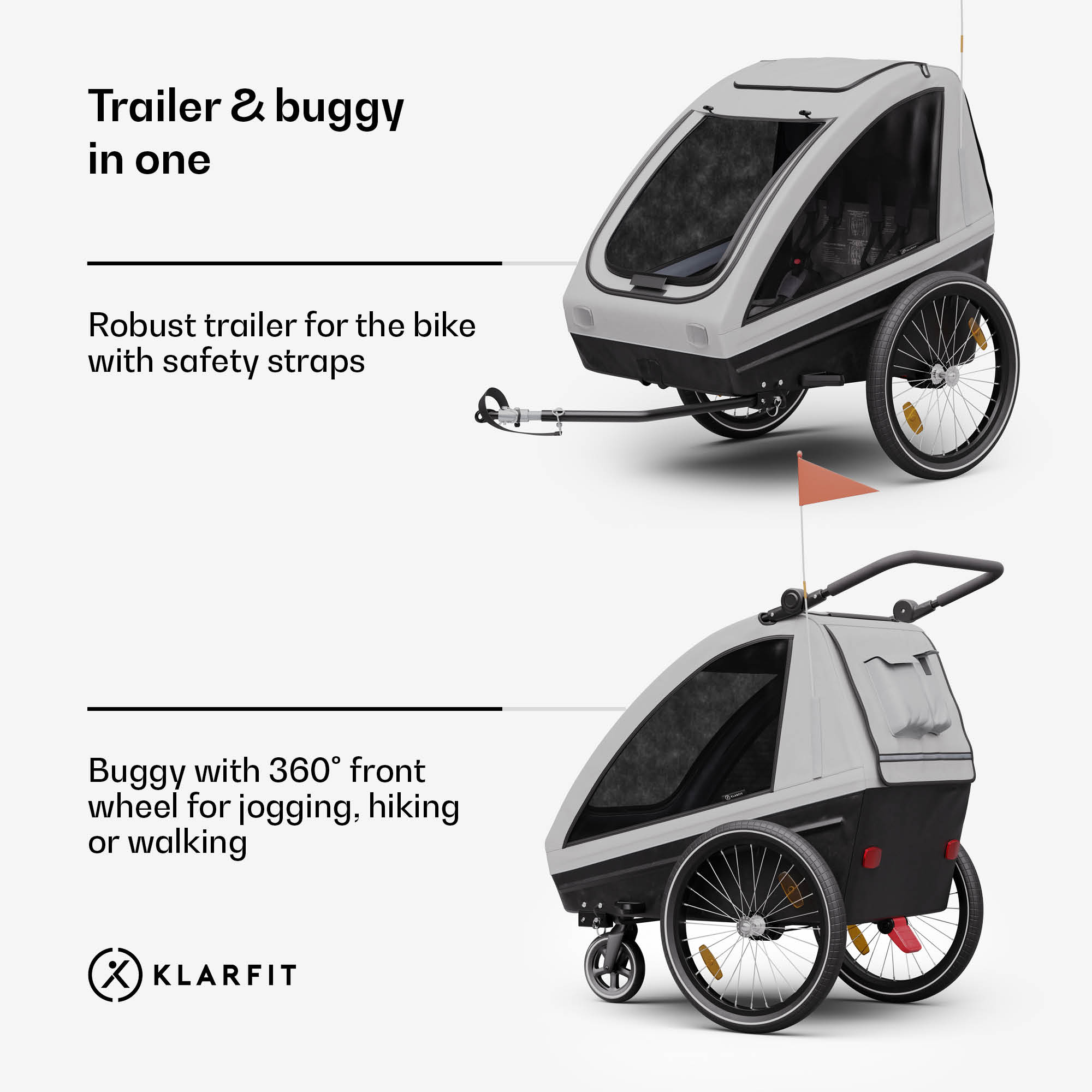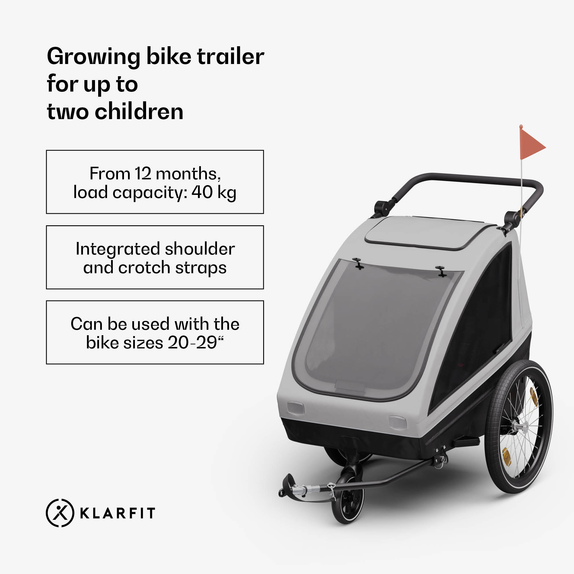 KLARFIT GoKiddo, príves na bicykel, príves/kočík, skladací, integrované brzdy, rastúci, pre 2 deti