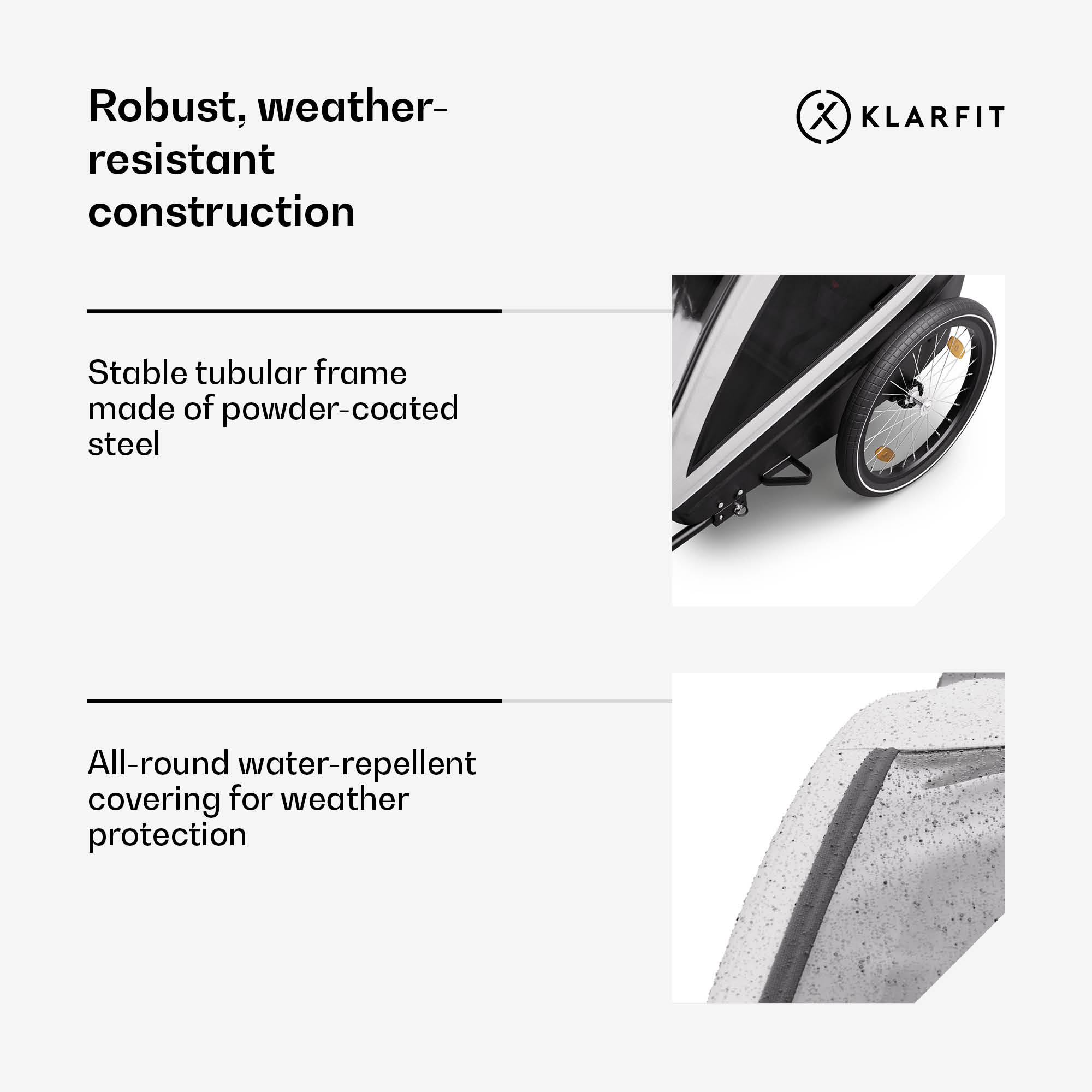 KLARFIT GoKiddo, príves na bicykel, príves/kočík, skladací, integrované brzdy, rastúci, pre 2 deti –Kúpiť