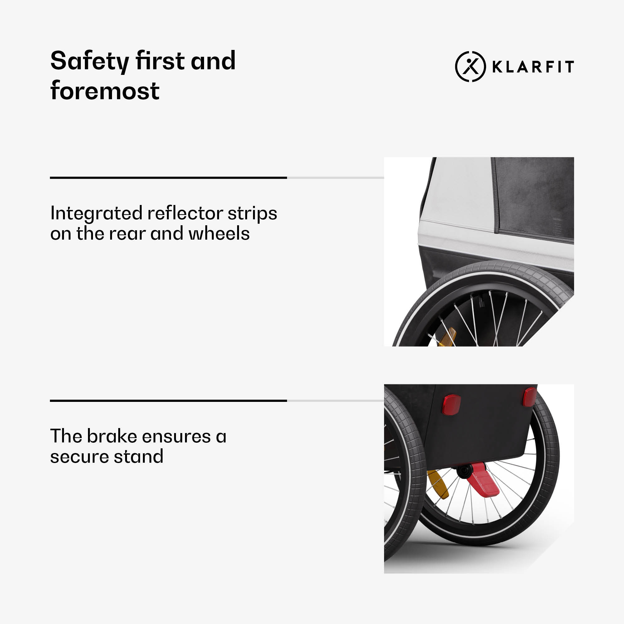 Príves na bicykel KLARFIT GoKiddo je dokonalým riešením, vďaka ktorému budú rodinné výlety na bicykli ešte bezpečnejšie a pohodlnejšie. Tento príves na bicykel s priestorom až pre dve deti ponúka nielen výnimočný komfort, ale aj najvyššie bezpečnostné štandardy pre vaše ratolesti.Zažite nezabudnuteľné rodinné výlety s prívesom na bicykel KLARFIT GoKiddo. Tento všestranný príves sa dá použiť ako príves na bicykel aj ako kočík a ponúka priestor až pre dve deti. Vďaka nastaviteľnému sedadlu s výškou 68 cm a nastaviteľným popruhom a opierkou hlavy možno prívesný vozík dokonale prispôsobiť potrebám a veľkosti detí. Integrované brzdy poskytujú dodatočnú bezpečnosť a vodoodpudivý polyesterový poťah udrží vaše deti v suchu za každého počasia a ochráni ich pred UV žiarením.S prívesom na bicykel KLARFIT GoKiddo si vy a vaša rodina môžete naplno užívať cyklistiku bez toho, aby ste museli robiť kompromisy v oblasti pohodlia a bezpečnosti.Upozorňujeme, že na používanie v cestnej premávke je potrebné dodatočne namontovať zadné svetlo schválené pravidlami cestnej premávky.