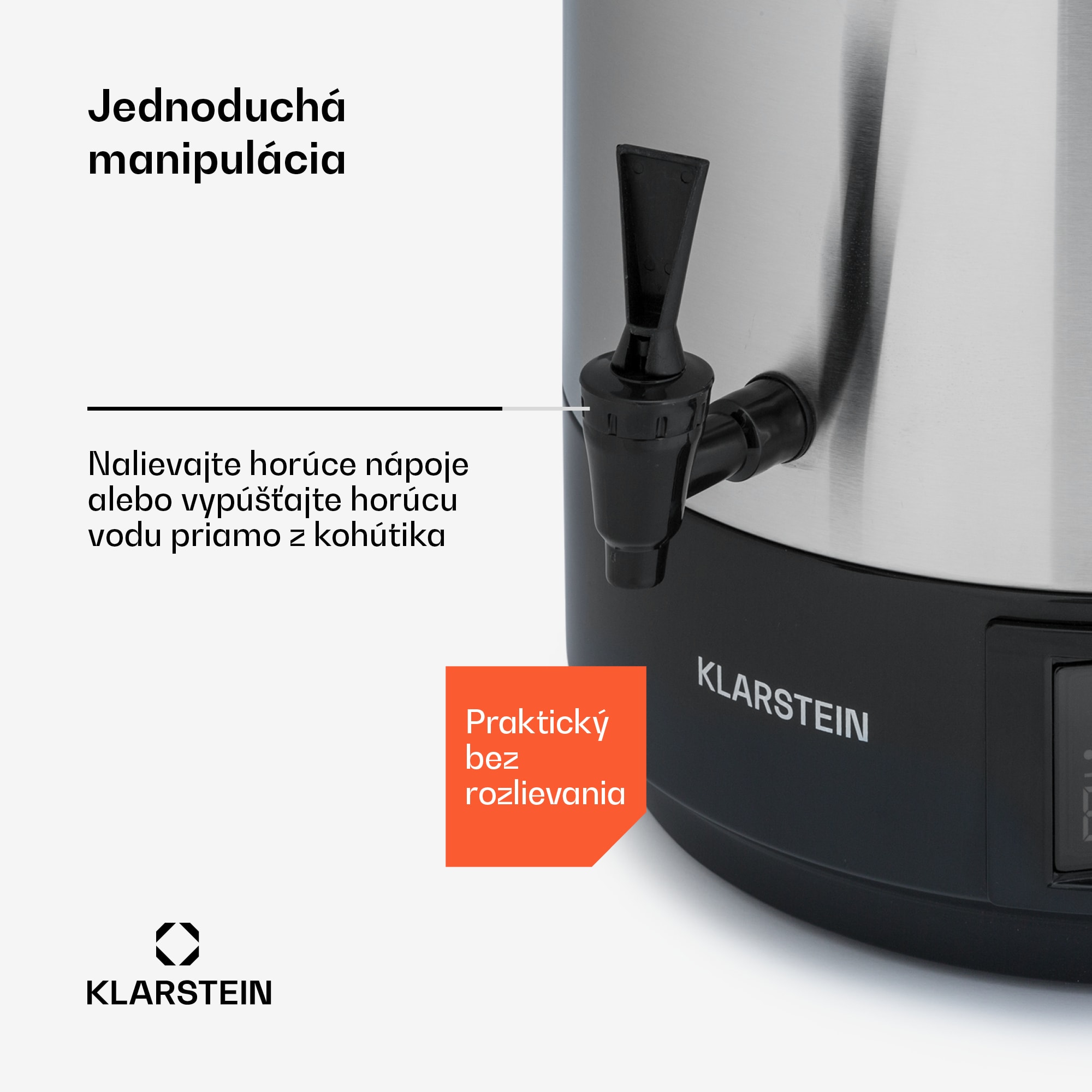 Lahôdky zo zaváraninových pohárov: Zavárací automat Abbey 40 od Klarstein je naša hviezda, pokiaľ ide o konzervovanie domácich džemov a vašich vlastných ovocných a zeleninových výtvorov.Dnes varíme, zavárame! Hrniec na konzervovanie Abbey 40 od Klarsteinprináša do jedálneho lístka rozmanitosť – dlhodobo. 40 litrový hrniec na konzervovanie ponúka dostatok priestoru na to, aby sa obsah vašich zaváracích pohárov teplom premenil na trvácne zaváraniny. Či už ide o úrodu ovocia alebo zeleniny, sladké džemové výtvory, slané klobásové zmesi alebo hotové guláše, pečienky či rolády – vďaka voliteľným teplotám 30 – 100 °C a dobe varenia do 180 minút sú v Abbey 40 spoľahlivo zachované.Vďaka chuťovo neutrálnemu a hygienickému interiéru z nehrdzavejúcej ocele, výpustnému kohútiku s Cool-Touch povrchom a integrovanej funkcii udržiavania teploty je ideálny aj ako dávkovač horúcich nápojov na čaj, punč alebo varené víno.