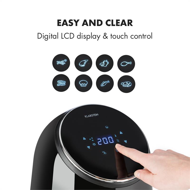 Ste pripravení na vyprážanie? Potešenie žalúdka z fritézy, no zároveň o 80% menej kalórií? Dá sa to! S teplovzdušnou fritézou Klarstein AirVital sa frituje, opeká, pečie a griluje takmer bez oleja a tuku: Chrumkavo, zdravo a chutne! Pripraviť hranolčeky, pozor, štart! Teplovzdušná fritéza Klarstein AirVital prináša revolučné fritovanie bez tuku a chuť povyšuje na novú úroveň. Jej 1300 W teplovzdušný systém používa sofistikovaný cirkulačný a prevzdušňovací systém a tým dosahuje požadované prevádzkové teploty v priebehu len 3 minút. Pomocou termostatu sa nastavuje požadovaný vykurovací výkon v krokoch po 5 °C od 80 °C do 200 °C. Potom ešte naprogramovať časovač po minútach do 60 minút a AirVital začne piecť. Pre koho je to ešte stále príliš komplikované, ten môže použiť jeden z 8 prednastavených programov: hranolčeky, slanina, kuracina, homár, steak, muffiny, huby & zelenina alebo ryby poskytujú celú škálu možností vyprážania, opekania, grilovania, pečenia. Do grilovacieho košíka sa zmestí až 2,5 kg surovín na zdravé fritovanie. Vďaka neprehrievajúcej sa rúčke môžete košík jednoducho vybrať a chrumkavé horúce lahôdky priniesť na stôl. Náš revolučný nepriľnavý povrch CeraPlus zabraňuje pripekaniu a následne uľahčuje čistenie. Digitálny displej s dotykovým ovládacím panelom veľmi zjednodušuje ovládanie a vždy zobrazuje všetky vykonané nastavenia. Nielen na jednohubky: S teplovzdušnou fritézou Klarstein AirVital sa bude fritovať, piecť a opekať zdravo a energeticky úsporne. Teplovzdušná frítéza je ideálnym riešením pre každého, kto chce kombinovať zdravý životný štýl s vynikajúcou chuťou. Dostupné farby: čierna, biela (produkt 10032331)