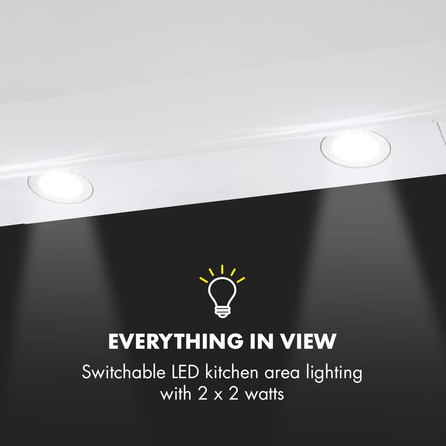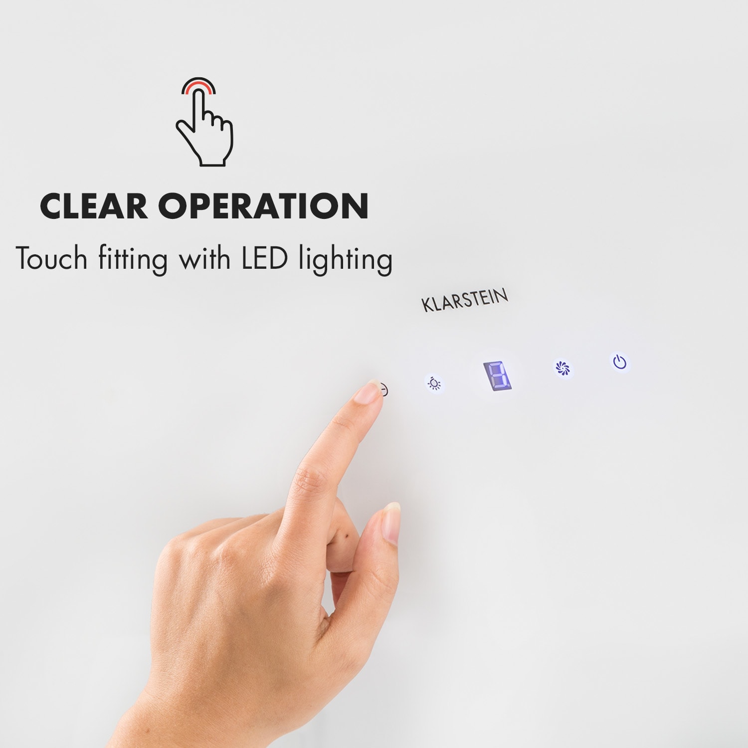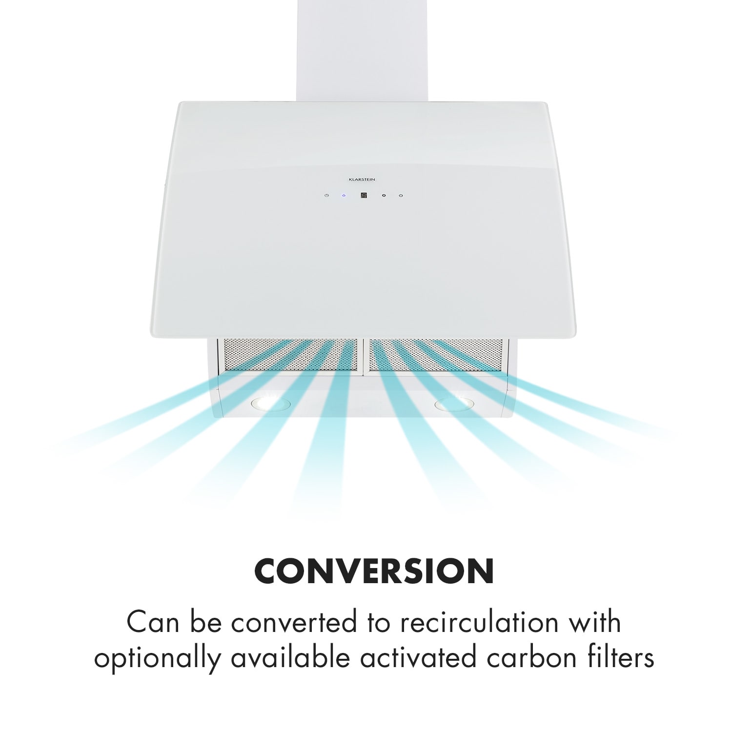 Klarstein Annabelle 60, digestor, 60 cm, nástenný, 595 m³/h, dotykový panel, sklo, biely –Kúpiť